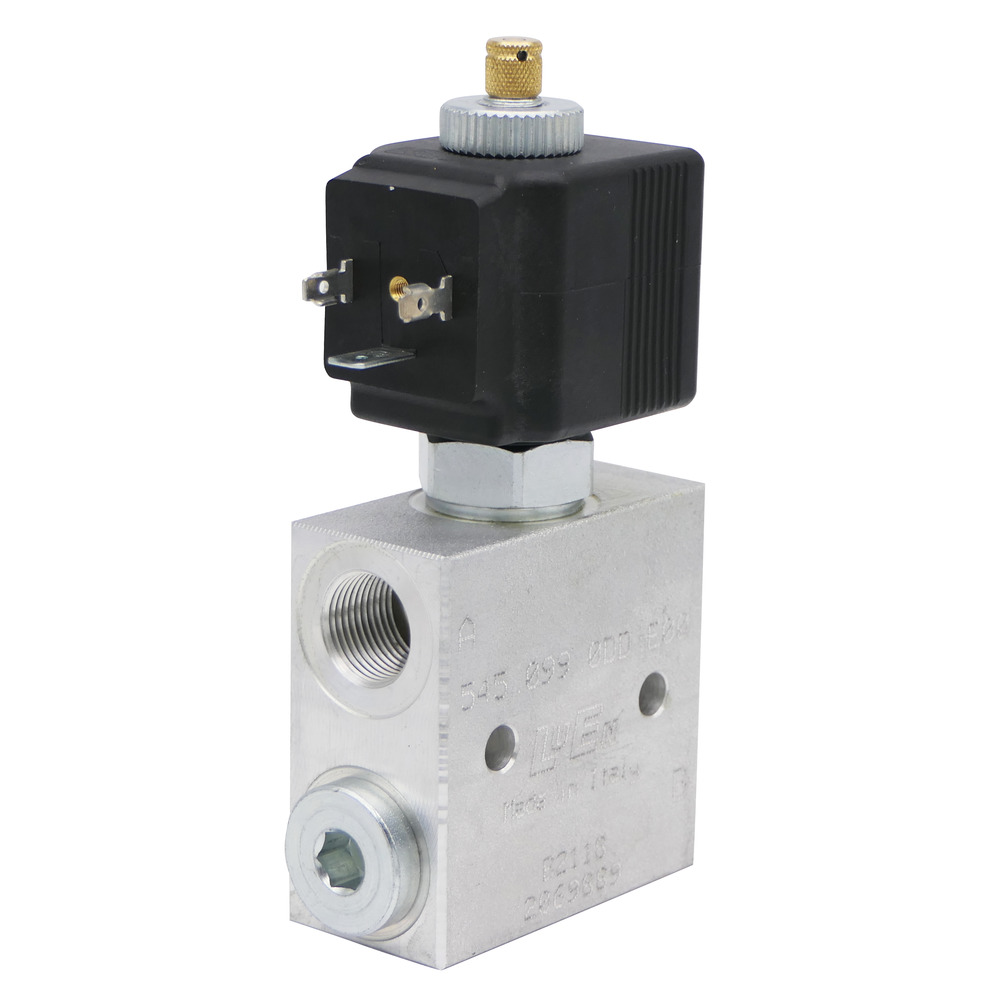 Mit Rückschlagventil und Notablass-Schraube. Verwendbar als elektromagnetischer Absperrhahn, als Öffner oder Schließer für einfache hydraulische Steuerungen. Einschaltdauer 100 %.