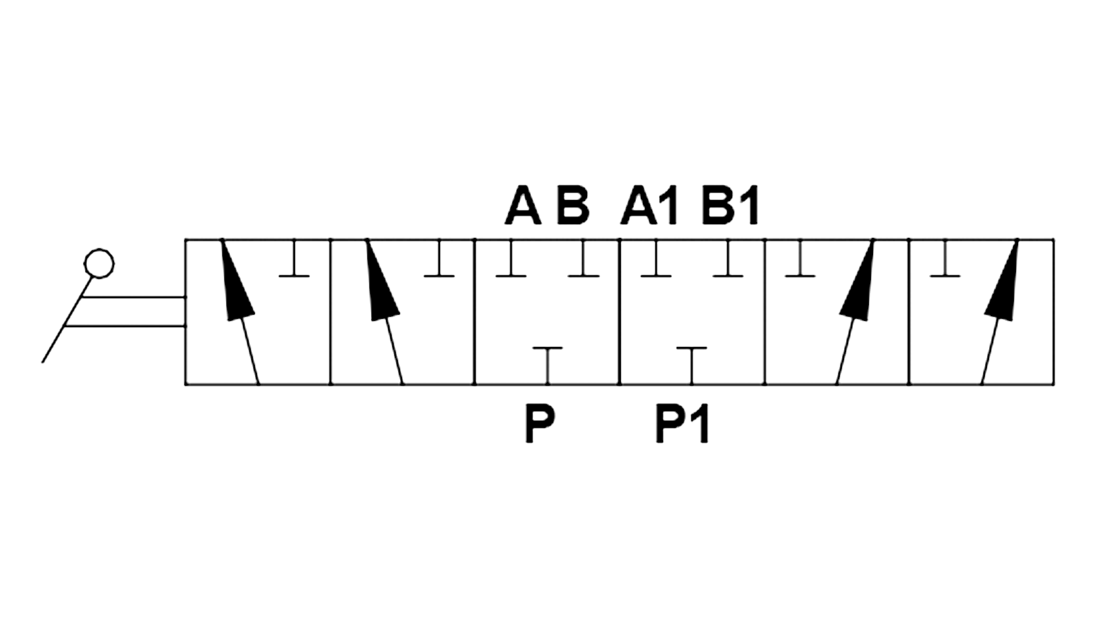 Das handbetätigte 6/2-Wege-Umschaltventil DEV hat die Funktion einer hydraulischen Weiche. Durch diese Funktion können mehrere doppeltwirkende Verbraucher angeschlossen und zeitversetzt betrieben werden. Die Versorgung der Verbraucher kommt von dem vorgeschalteten Steuergerät, bei dem alle Steuerfunktionen erhalten bleiben.In der Mittelstellung sind alle Anschlüsse geschlossen.