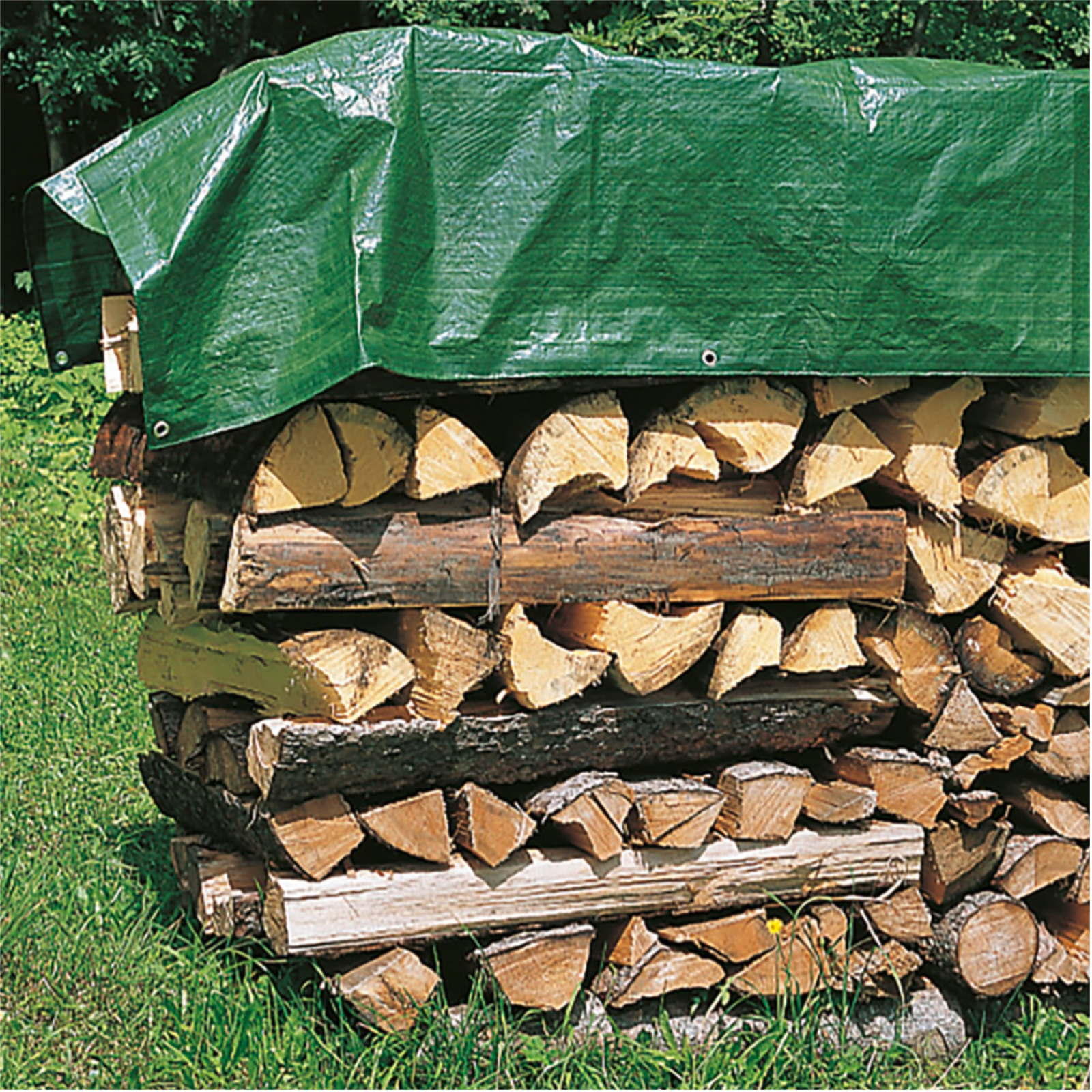 Aus hochwertigem wasser- und reißfestem Bändchengewebe (100 g/m²) mit Randverstärkung und Alu-Ösen, Ösenabstand 1 m, . Material aus umweltneutralem Polyethylen, UV-stabilisiert und recyclebar. Farbe beidseitig grün. Toleranz +/- 1 %.