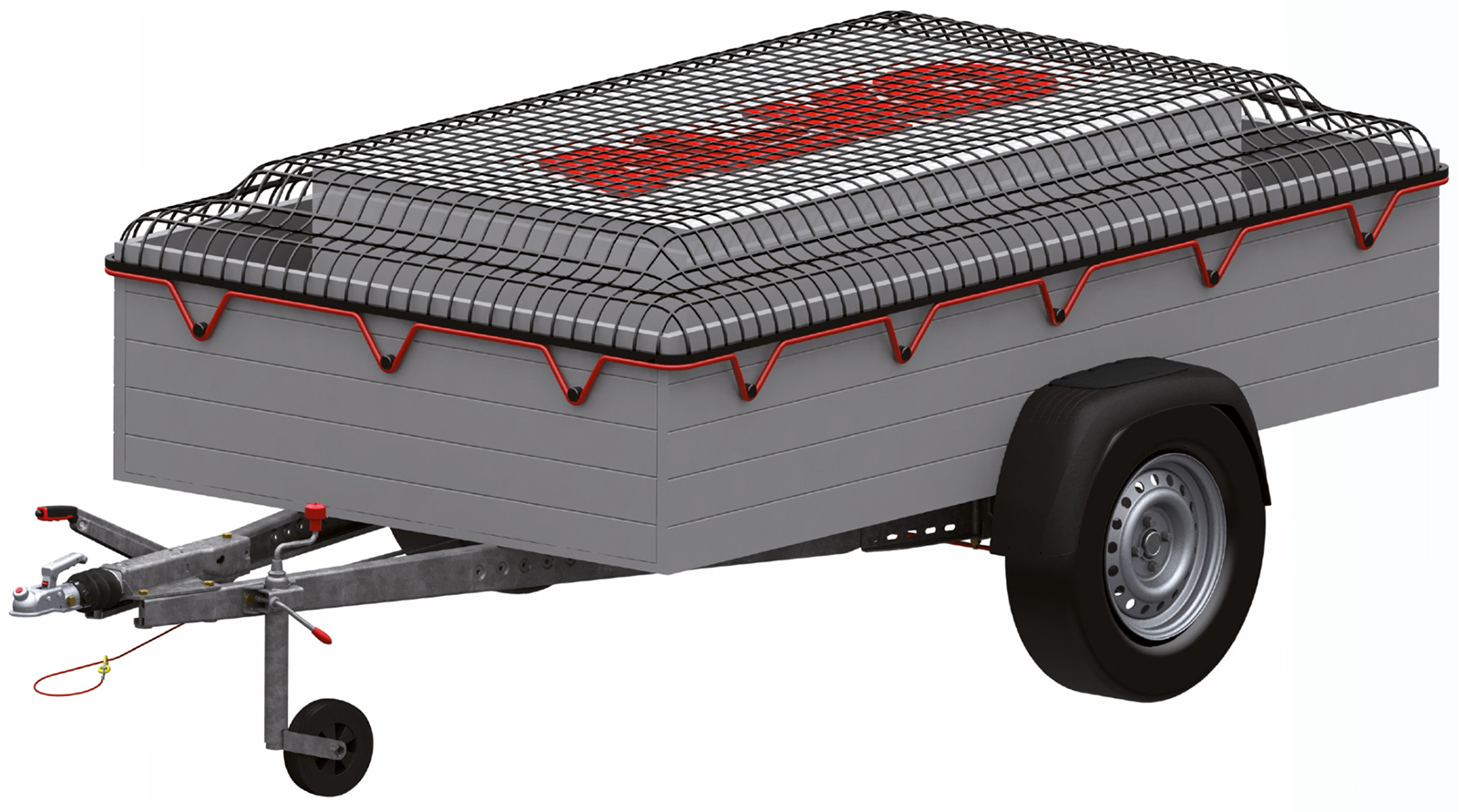 Für Anhänger, Pritschen,... grobmaschigMaterial PE, schwarz, Maschenweite 30 x 30 mm,mit elastischer Kordel, inkl. Expanderseil und PVC-Aufbewahrungstasche.TÜV SÜD zertifiziert