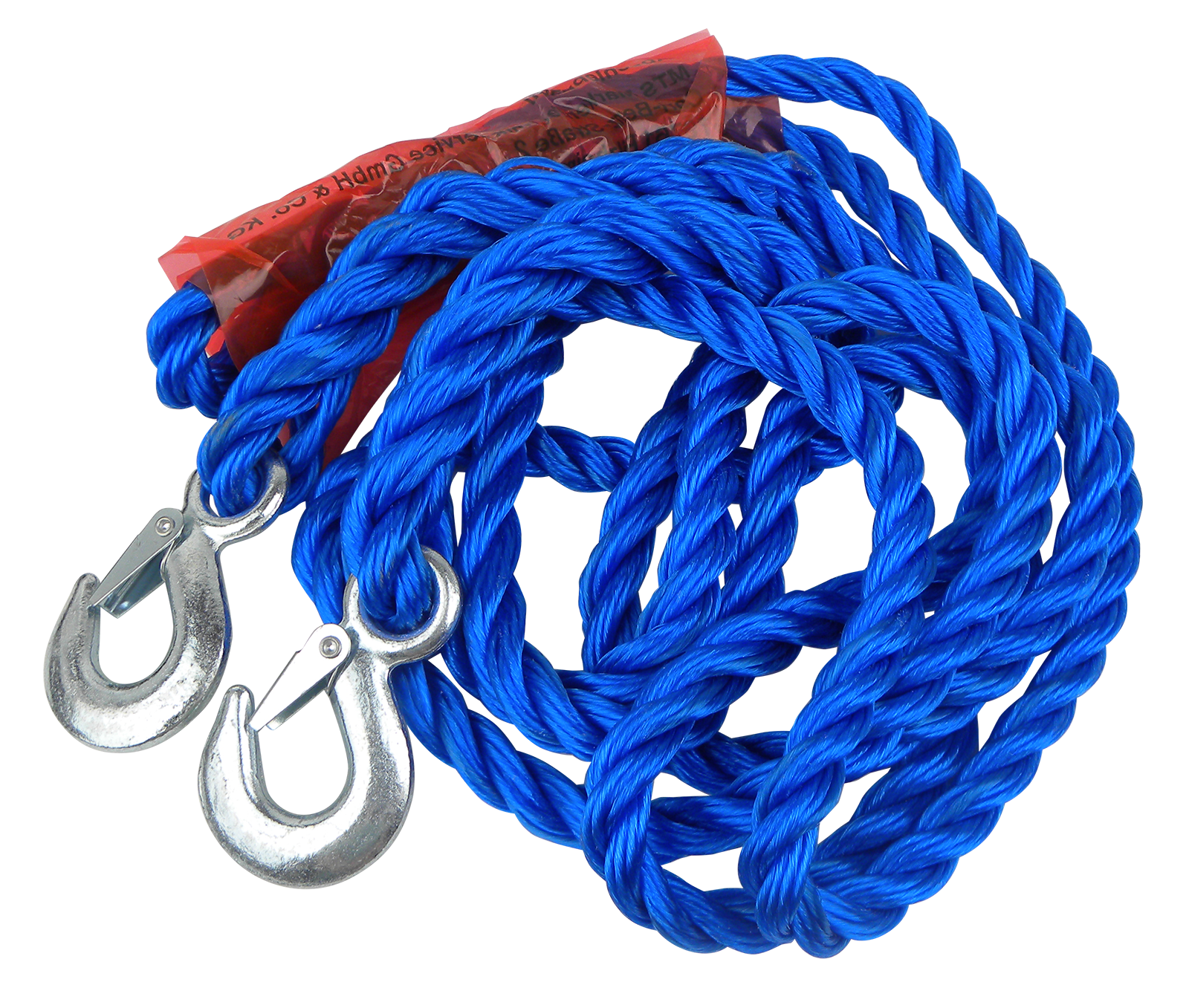 Hochwertiges Abschleppseil mit 2 Lasthaken, Bruchlast 2500 kg, Länge 4 m.