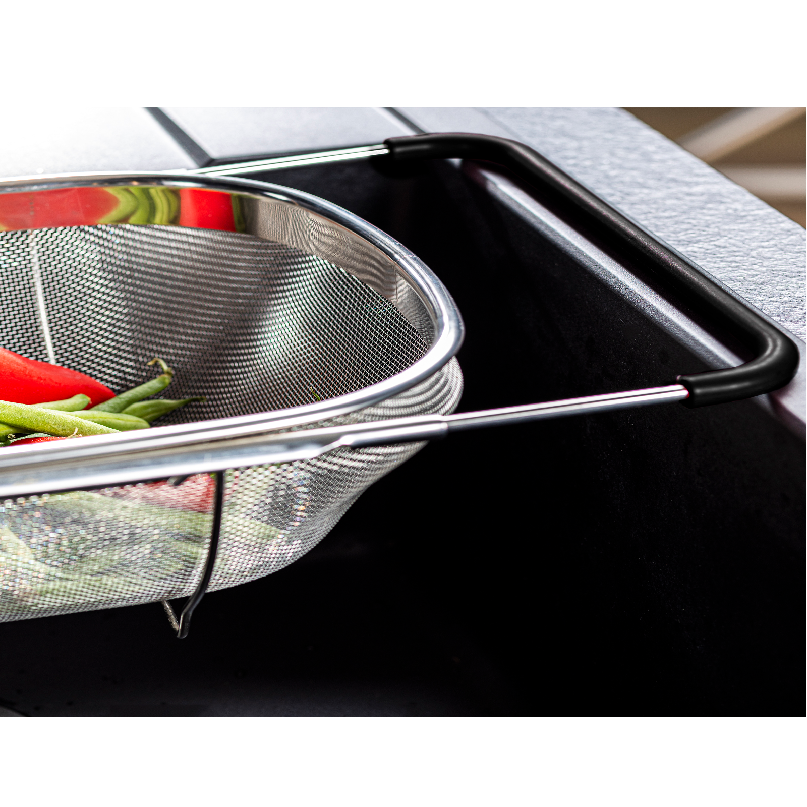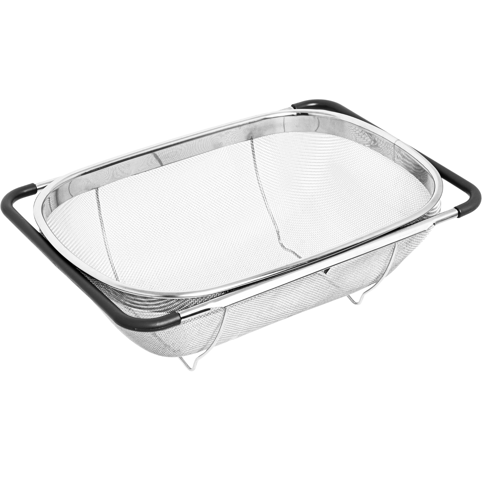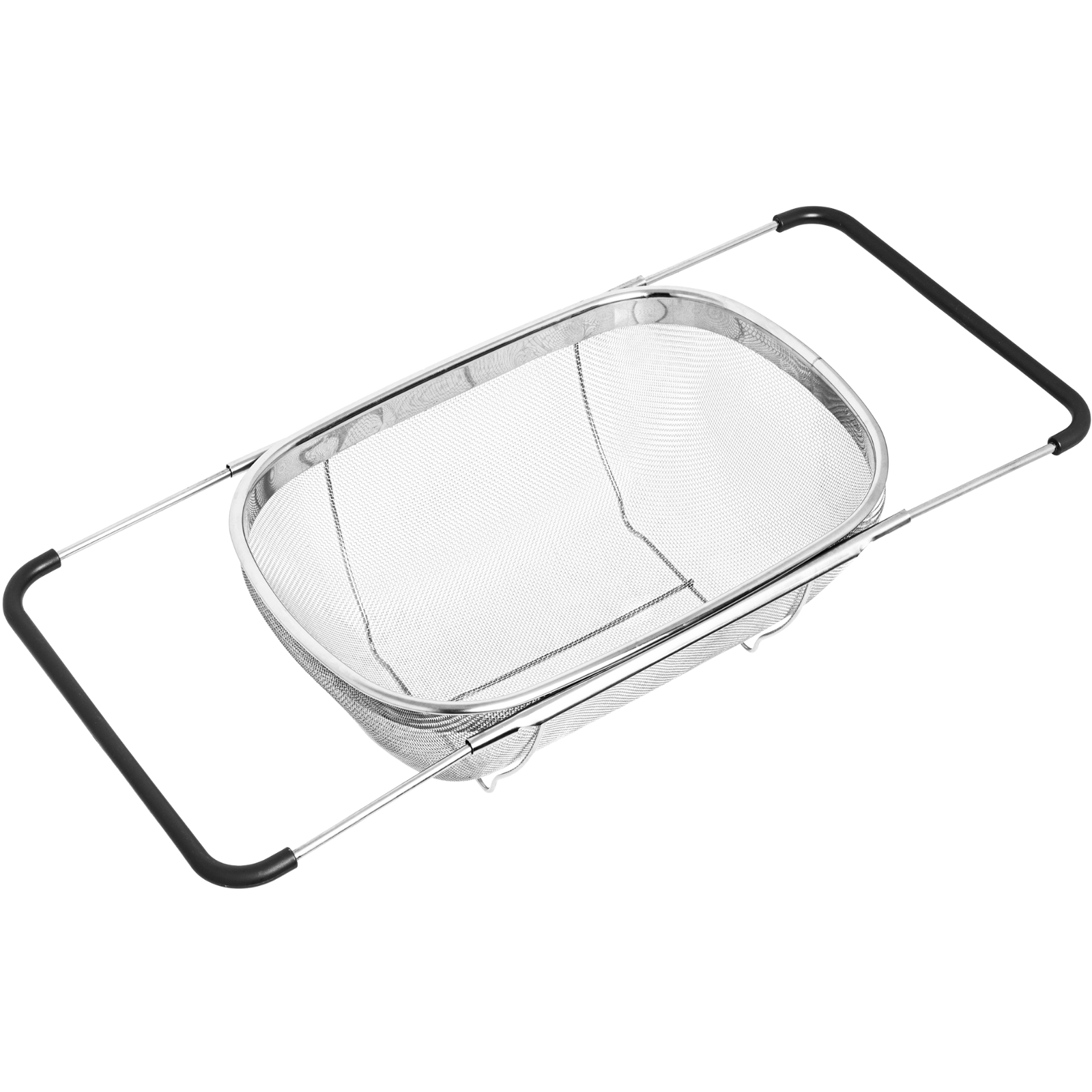 Mehr Platz beim Abtropfen: Dieses praktische Abtropfsieb aus Edelstahl lässt sich von ca. 34 cm auf großzügige 56 cm verlängern.Ideal für Geschirr, Obst und Gemüse.Kompakte Lagerung dank der Maße von ca. 34 x 24 x 11 cm.
