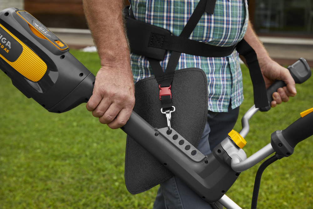 Die Akku-Motorsense BC 700e B mit Doppelgriff von STIGA bietet volle Kontrolle, Geschwindigkeit und Leistungsstärke. Mit dem ePower440 48-V-Akku (4 Ah) und dem fortschrittlichen bürstenlosen 500-W-Motor stehen 60 Minuten für kontinuierliches Schneiden zur Verfügung. Jedes Teil dieses Designs liegt gut in der Hand und fühlt sich solide, ausgewogen und sicher an. Mit fünf verschiedenen Positionen für den Haltegurthaken ist sie ideal für Steigungen und unwegsames Gelände geeignet.