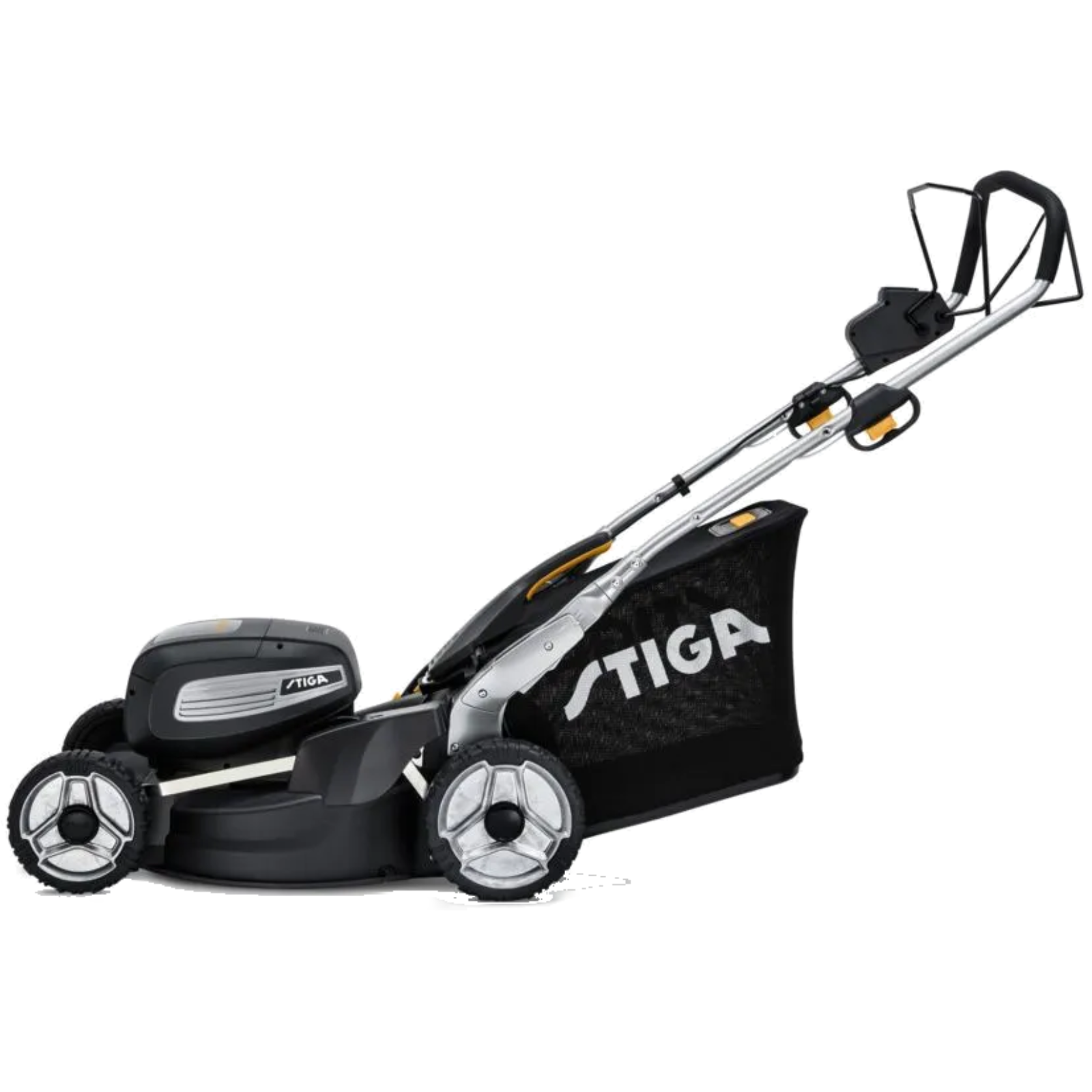 Extrem widerstandsfähige Aluminium-Radkappen und Tragegriff - 2 x STIGA ePowerE 475 (7,5Ah) Akkus und Ladegerät inklusive