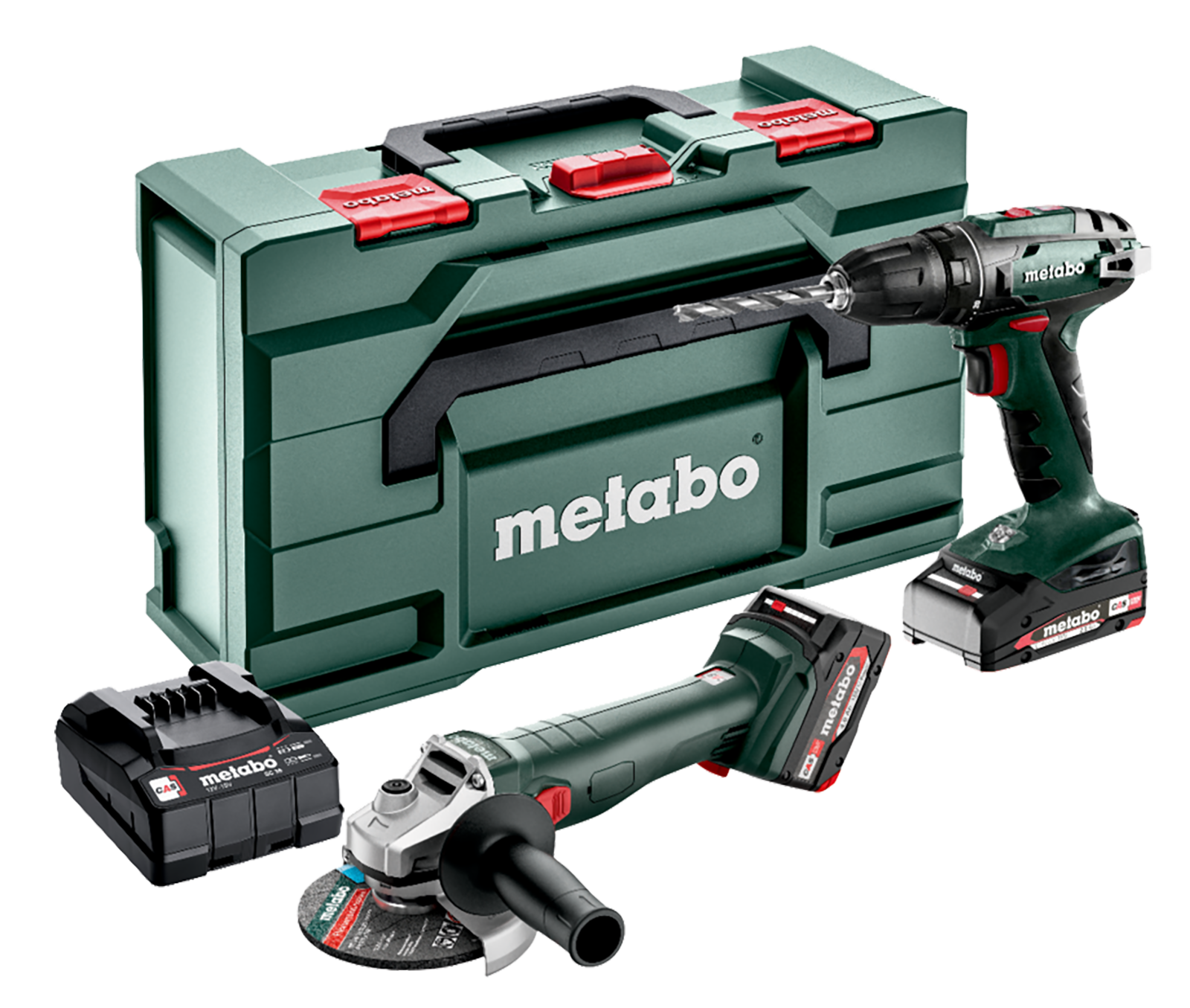 Im Set mit Metabox, Ladegerät und je 1Stk 18 V/2,0 und 18 V 4,0Ah Akku.
