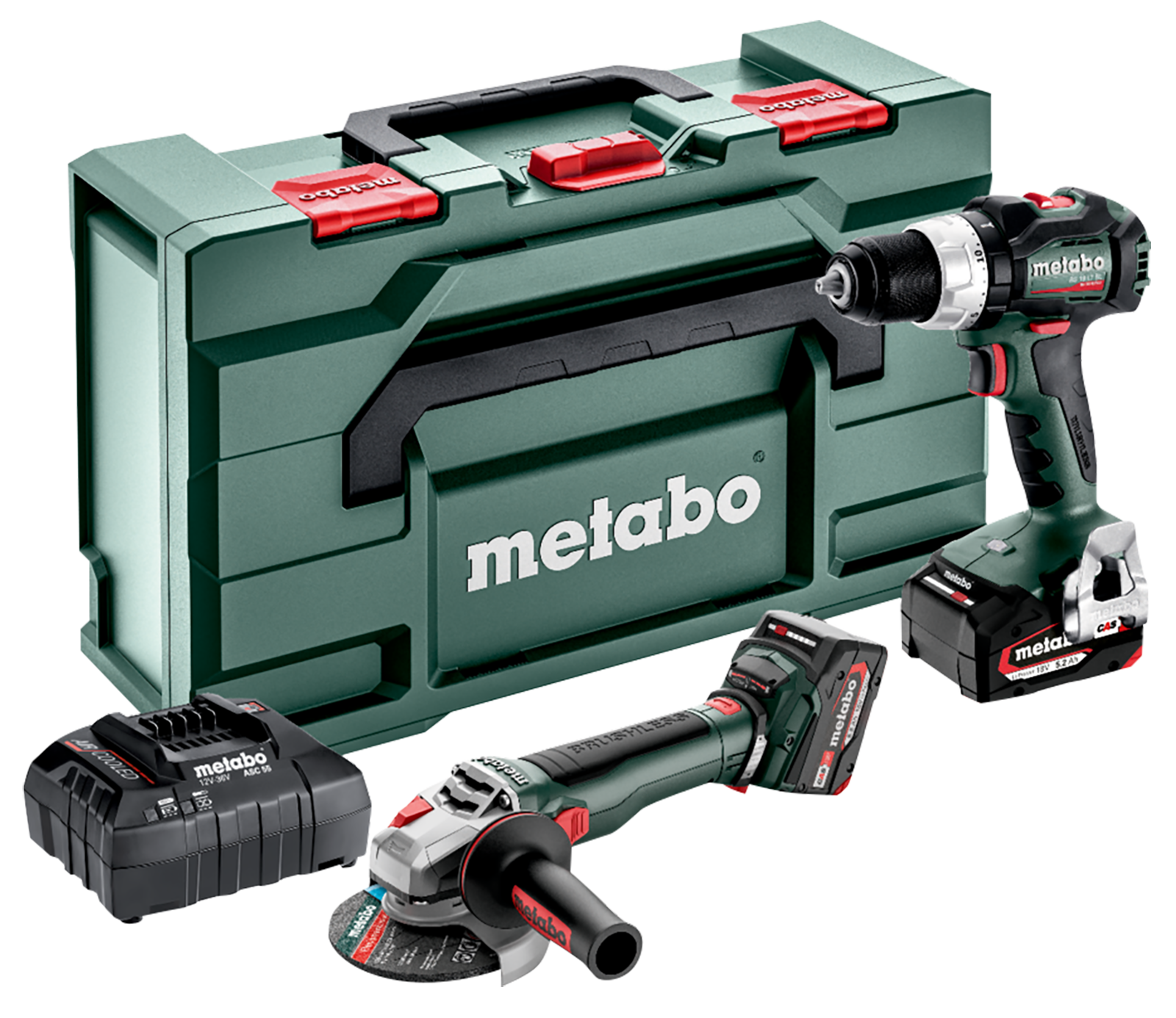 Praktisches Quick Schnellspannsystem für schnellen und werkzeuglosen Wechsel der Trennscheibe. Im Set mit je einer Maschine, Metabox, 1x Ladegerät sowie 2stk 18V/ 5,2Ah LiPOWER Akkus.