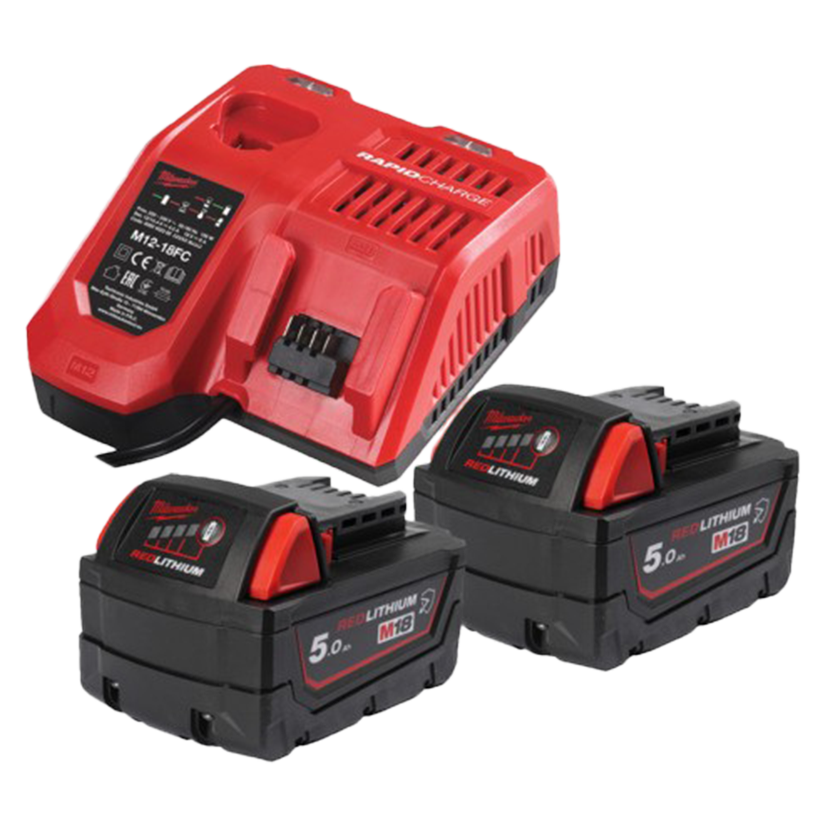 Starterset mit 2 x 18 V / 5,0 Ah Akkus und Kombinierten 12 / 18 V Schnellladegerät.