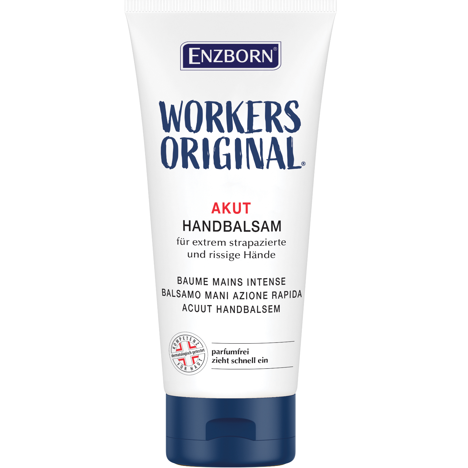 ENZBORN Workers Original Akut Handbalsam ist eine Intensivpflege, die die Selbstheilung extrem strapazierter und rissiger Hände fördert. Der Repair-Effekt garantiert sofortige Abhilfe bei besonders beanspruchten Händen und unterstützt nachhaltig die Schutzfunktion der Haut, durch intensive Feuchtigkeitszufuhr. Der Handbalsam schützt wie eine zweite Haut vor Wetter- und Umwelteinflüssen und macht die Haut so widerstandsfähiger gegen extreme Belastungen. Zieht schnell und rückstandslos ein, ohne zu fetten. Die Hautverträglichkeit ist dermatologisch mit “sehr gut” bestätigt. Der Handbalsam ist pH-neutral, vegan und frei von Parfümen, Mineralölen, Parabenen, Silikonen und Mikroplastik1. Inhalt 100 ml.Inhaltsstoffe:AQUAGLYCERINMYRISTISCHE SÄURECAPRYLIC/CAPRIC TRIGLYCERIDESESAMUM INDICUM (SESAM) SAMENÖLPOLYGLYCERYL-3-DISTEARATGLYCERINSTEARATCETEARYL-ISONONANOATKALIUMCETYLPHOSPHATORYZA SATIVA (REIS)-STÄRKEDICAPRYLYLETHERPANTHENOLHYDRIERTE PALMGLYCERIDENATRIUMCHLORIDNATRIUMLEVULINATCAPRYLYLGLYKOLNATRIUMBENZOATGLYCERINSTEARAT-ZITRATSPHINGOMONAS FERMENT EXTRACT