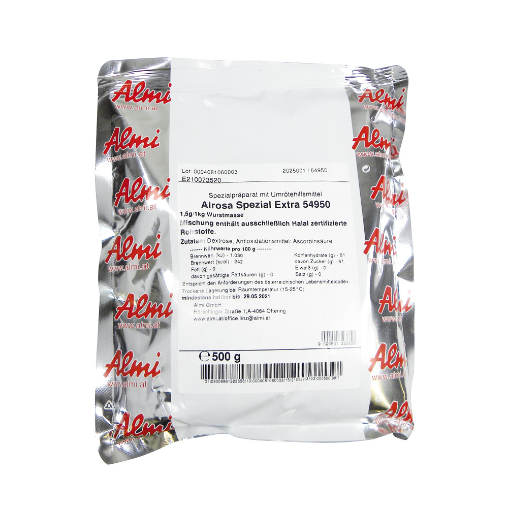 Spezialpräparat mit Umrötehilfsmittel, Mischung enthält ausschließlich Hala zertifizierte Rohstoffe, 1,5g/1kg Wurstmasse