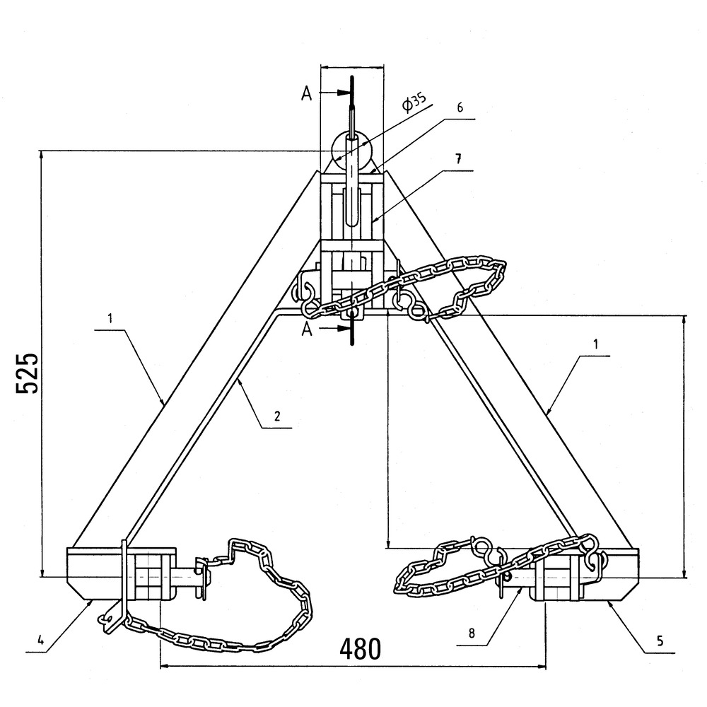 Zum Ankuppeln von Front- und Heckgeräten, Material Feinkornstahl QSTE380 (St52-3). Gefertigt aus Rahmenprofilen 60x60x5mm.