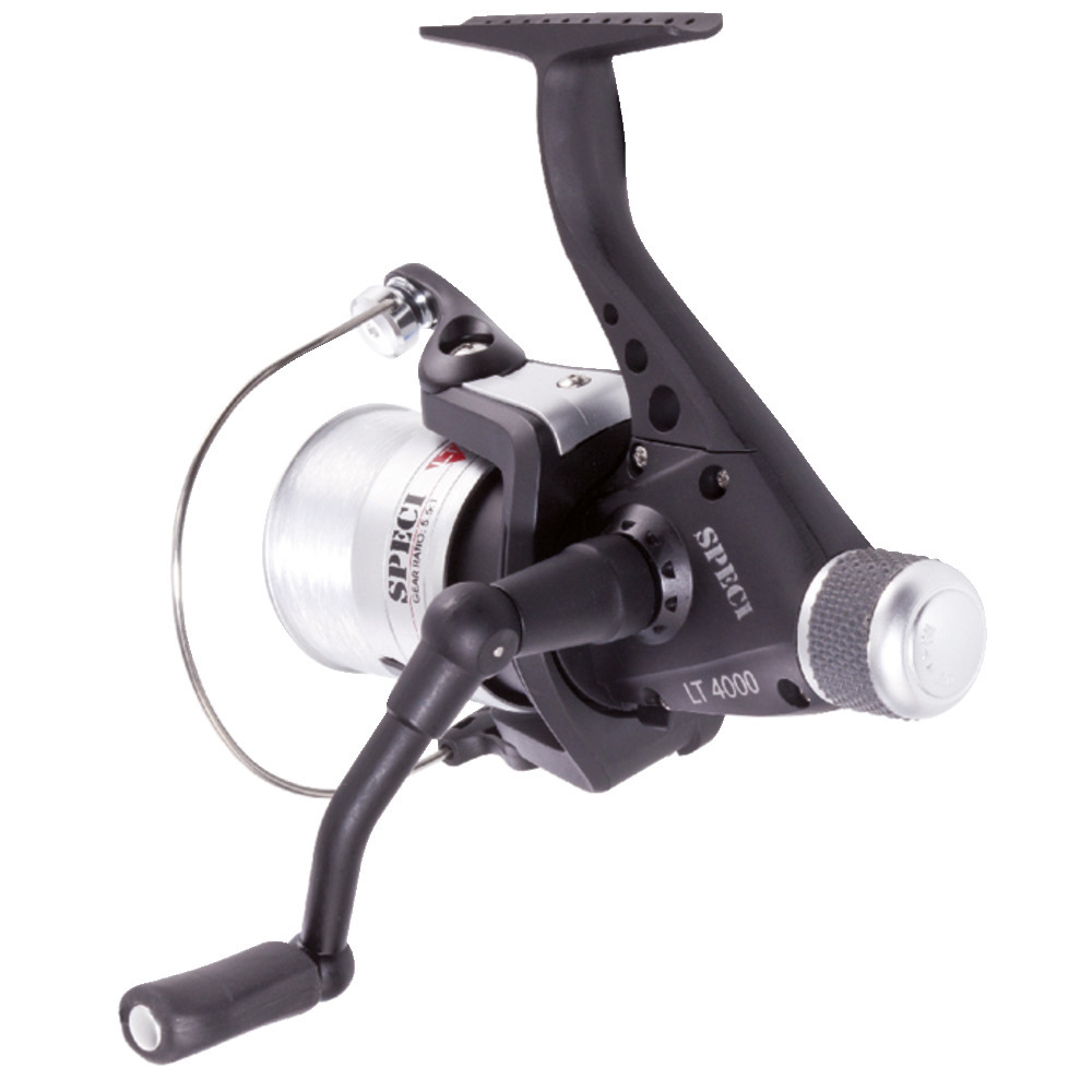 Technische Ausstattung der Speci LT: Kugellager, Maxi-Stop-System – wirkt nahezu überall, großes Anti-Drall Schnurlaufröllchen, fein einstellbare Heckbremse, Schnur bereits auf der Rolle (je nach Rollengröße 0,25 – 0,35 mm).