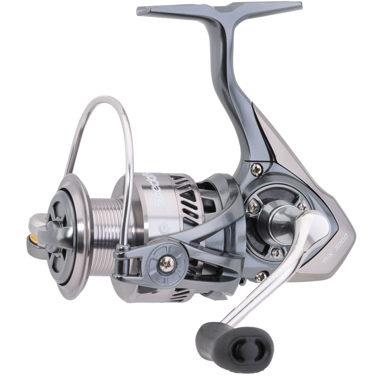 Specialist TI-X – Kraft trifft PräzisionDiese hochwertige Stationärrolle überzeugt auf den ersten Blick durch ihre edle Dark-Gunsmoke-Optik.Im Inneren steckt moderne Technik, die besonders im Drill mit kampfstarken Fischen punktet.Die fein justierbare Frontbremse (bis zu 11 kg Bremskraft) arbeitet zuverlässig und gleichmäßig.Ein ausbalancierter Rotor, das stabile Messinggetriebe und das S-Curve-System sorgen für saubere Schnurverlegung und ruhigen Lauf.Die Rolle ist vielseitig einsetzbar – ideal für Spinnangler, Forellenfans oder Friedfischprofis.Ausstattung im Überblick:• starke, fein einstellbare Frontbremse• 9+1 Kugellager mit One Way Clutch• CNC-Alukurbel mit Soft Touch Knauf• Anti-Twist-Schnurlaufröllchen• Aluminiumspule & robuster Bügel• ruhiger Lauf dank Rotor Balance SystemEine Rolle, die durch Leistung, Design und Langlebigkeit überzeugt.