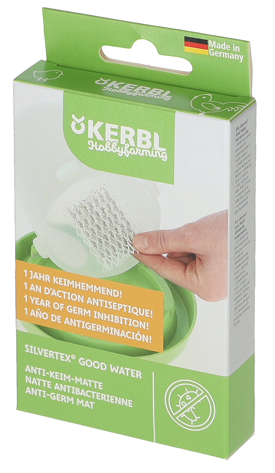 Die silvertex® Anti-Keim-Matte ist eine mit Silber beschichtete textile Matte zur Wasserkonservierung von Geflügeltränken. Das selbst dosierende System gewährleistet einen permanenten Schutz vor Verkeimung und Biofilmen bis zu 12 Monate. Durch die antimikrobielle Wirkung von Silberionen erreicht das silvertex®-System eine Konservierung des Trinkwassers in Ihren Geflügeltränken. Dies verbessert zum einen die Sauberkeit des Wassers, welches dem Wohl der Tiere zugute kommt und sorgt für einen geringeren Wartungsaufwand