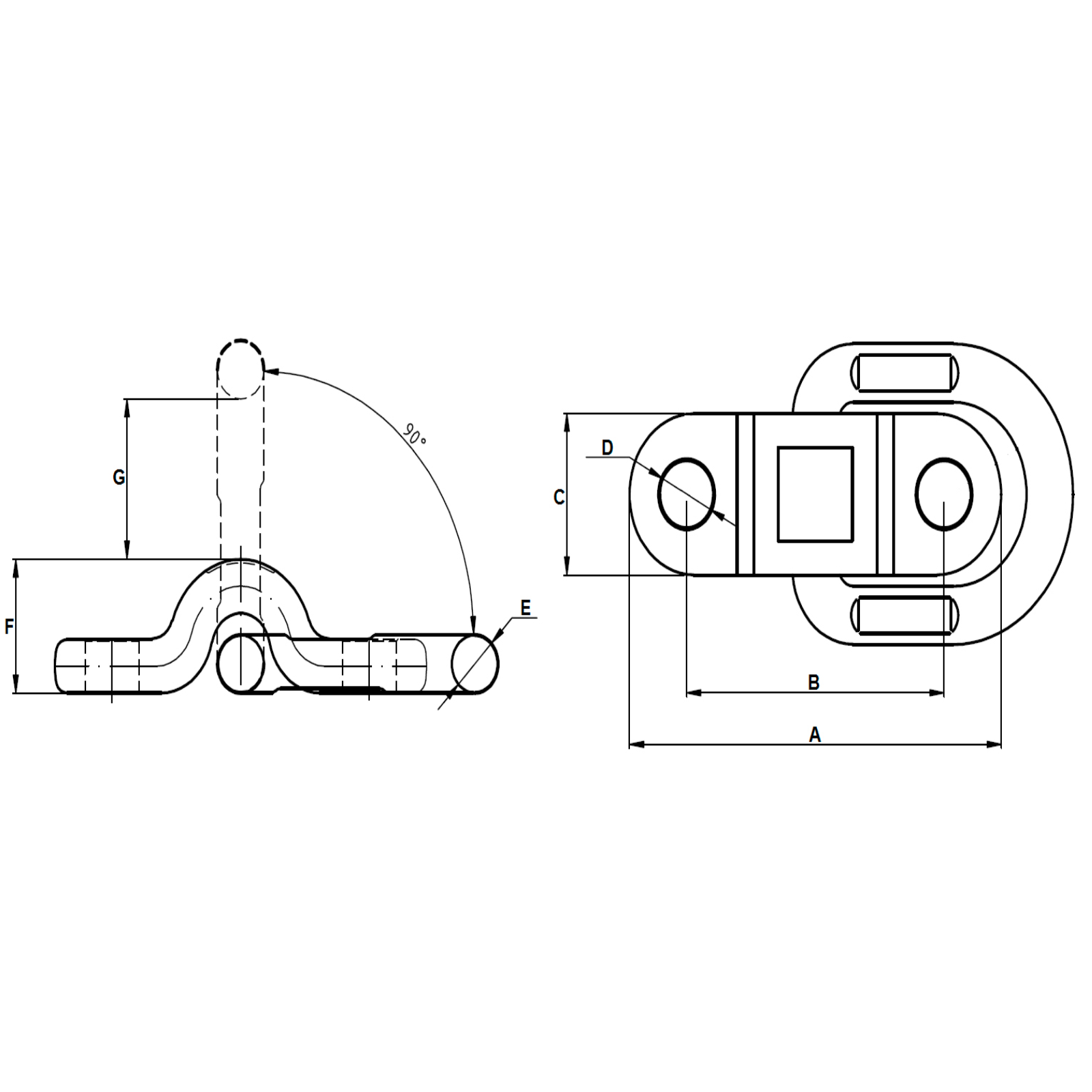 Anschlagpunkt zur Ladungssicherung,180° schwenkbar,Tragfähig bei 0° und 90° (Sicherheitsfaktor: 4)Lieferung ohne Schrauben, nur Güte 10.9 verwenden!