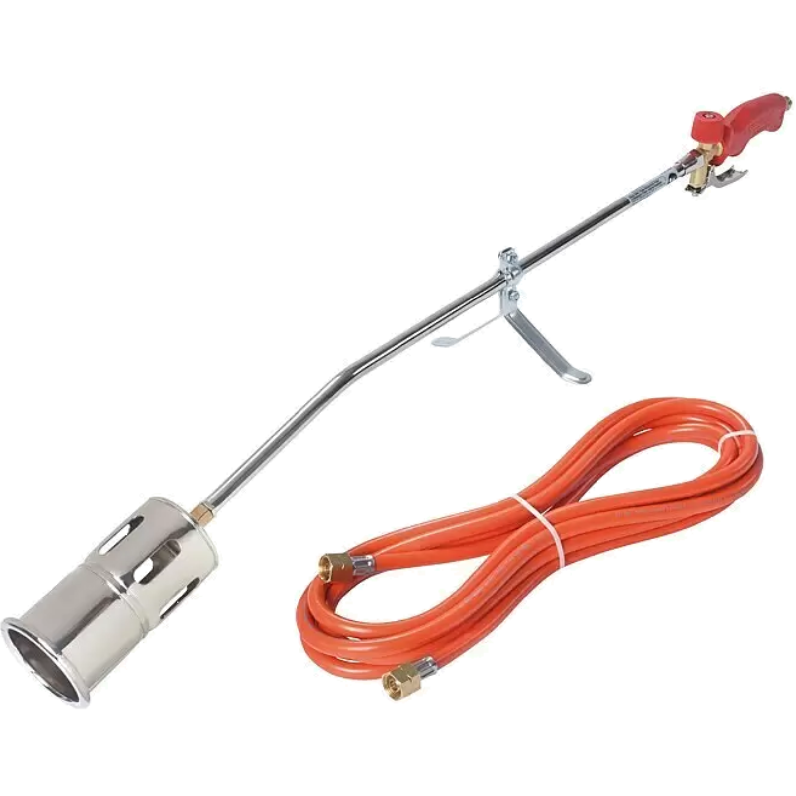Dieses Set eignet sich zum Kleben von Bitumenbahnen, großflächigen Unkrautabflammen, Auftauen, Isolieren, Schrumpfen, Trocknen sowie Anwärmen und ist ideal für Bedachungs- und Asphaltierarbeiten.Für den Gebrauch eignen sich Propangasflaschen.Das Set besteht aus einem randverstärkten und oberflächenvergüteten Hochleistungsbrenner mit Flammenstabilisator, einem ergonomischen Sicherheitshandgriff mit Dreiwegeventil und fixierter Pilotflamme, einem Brennerrohr ca. 35° gebogen mit Brennerstütze und einem Propangasschlauch.