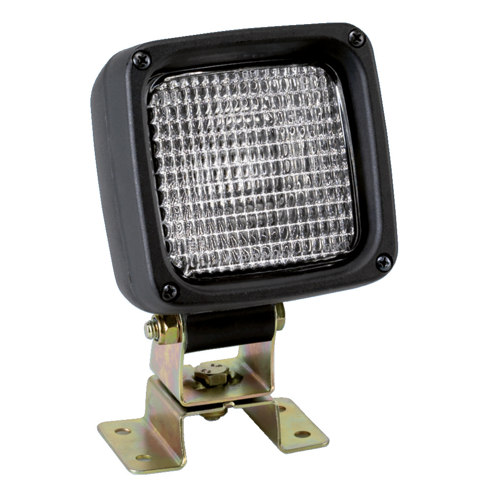 Aus schlagfestem Kunststoff, Glasstreuscheibe. Extrem starke Arbeitsfeldausleuchtung bei kleinster Bauweise. Horizontal schwenkbar um 360°. H3 12 V/24 V. BxHxT: 100x100x97 mm. (ohne Schalter, mit H3 Lampe, 12 V).