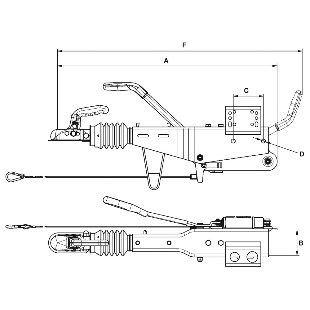 für Vierkantrohr 70 mm, feuerverzinkt, mit Rückfahrautomatik, mit Stützradkonsole