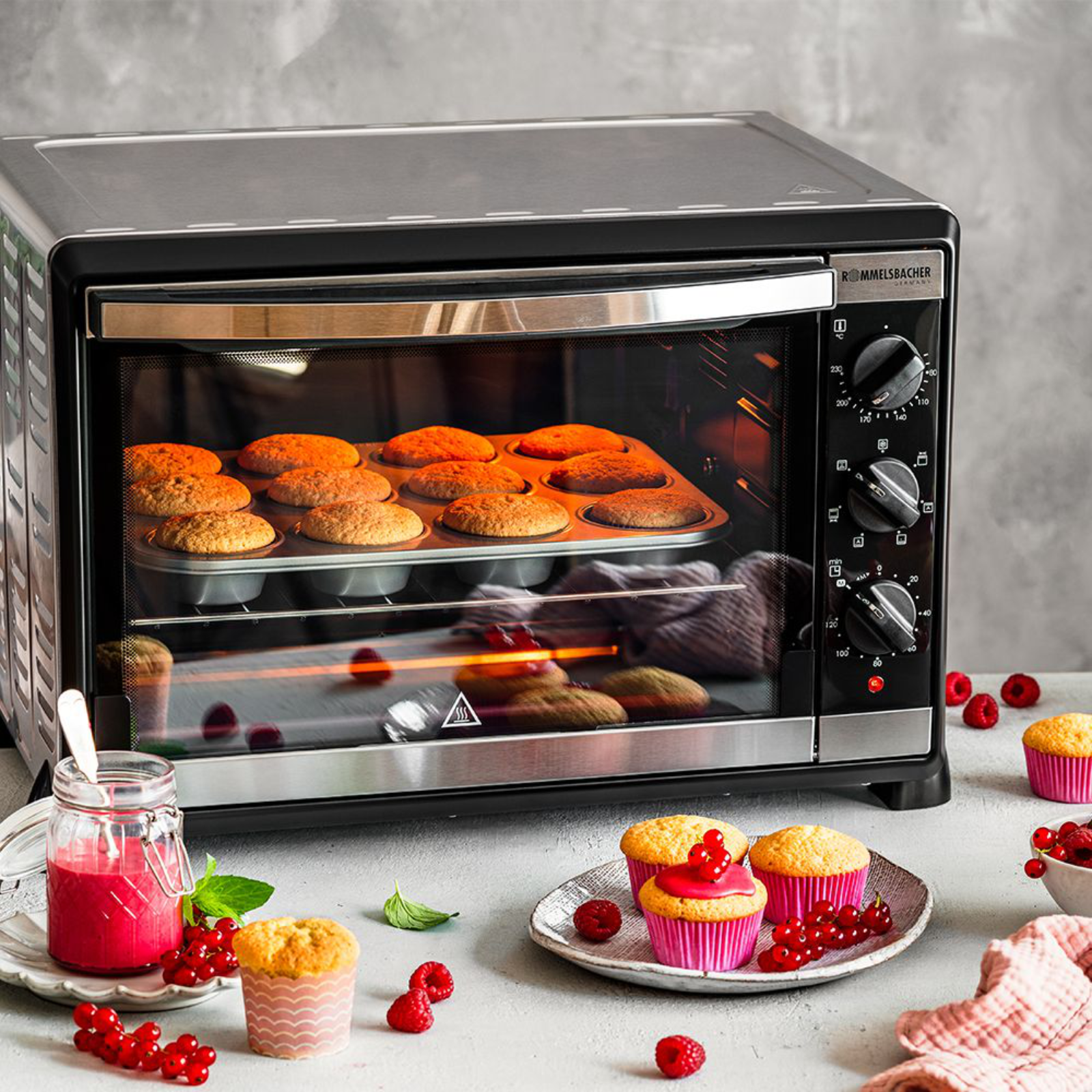 Der kompakte Backraum mit Doppelverglasung und dichter Tür hält die Wärme im Gerät.
