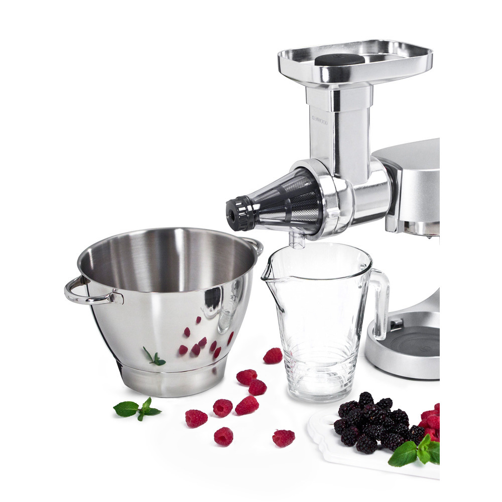 Kenwood Beerenpresse: Für köstliche Säfte, Pürees und MarmeladenSuchen Sie nach einer Möglichkeit, frische und köstliche Säfte, Pürees und Marmeladen aus Ihren eigenen Beeren herzustellen? Dann ist die Kenwood Beerenpresse die perfekte Lösung für Sie!Mit dieser praktischen Küchenhilfe können Sie im Handumdrehen große Mengen an Beeren verarbeiten und so köstliche und gesunde Fruchtpürees, Marmeladen und Säfte herstellen. Die Beerenpresse eignet sich auch perfekt zum Entsaften von anderem Obst und Gemüse, wie z. B. Äpfeln, Birnen, Tomaten und Karotten.Geeignet für folgende Küchenmaschinen: Chef/Chef XL, Küchenmaschine KVL8320S, KVC7320S, KVL6320S & KVC5320S sowie Chef Sence! Für alle älteren Modelle passender Adapter (Faienr. 97166) notwendig.