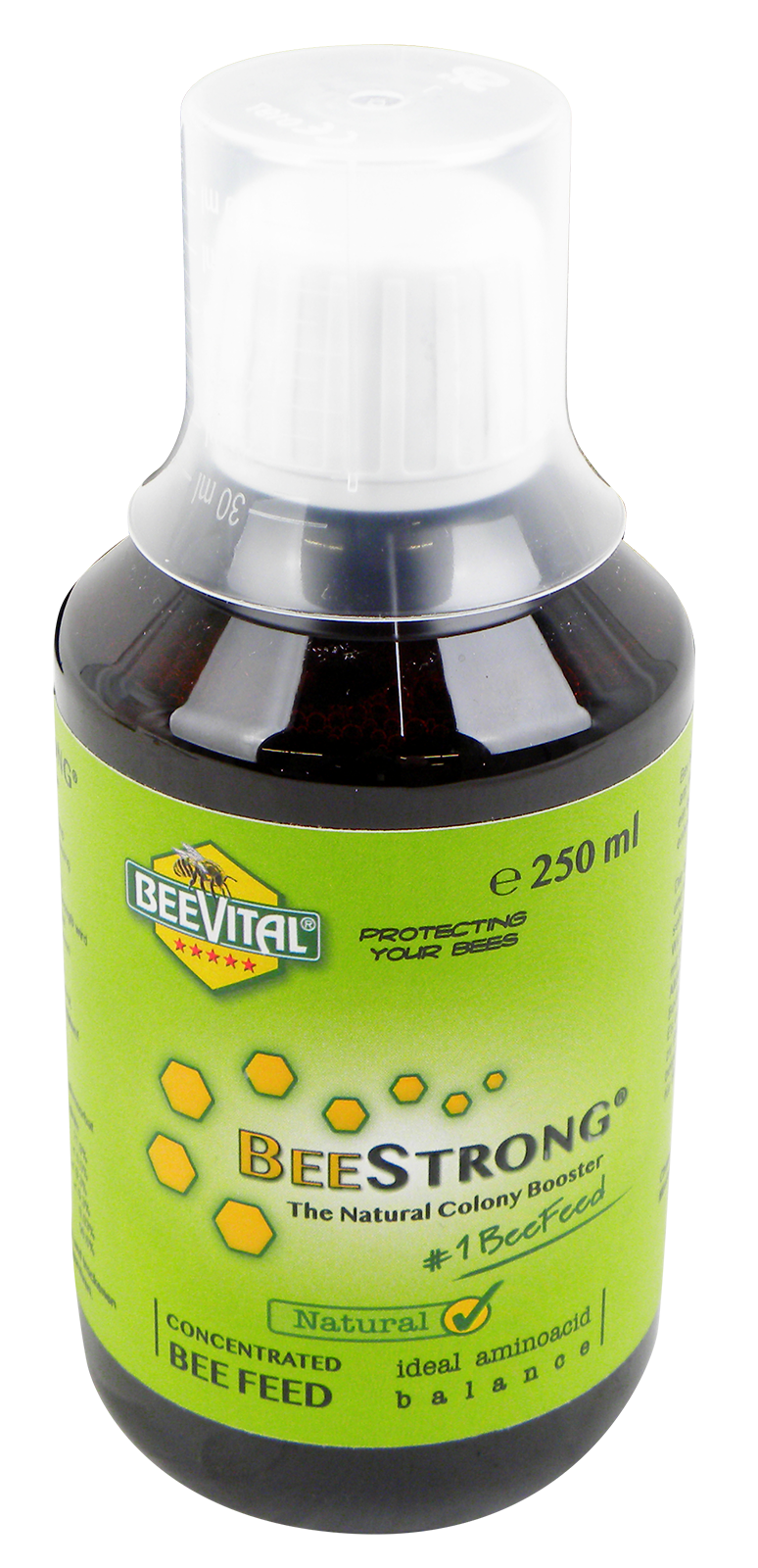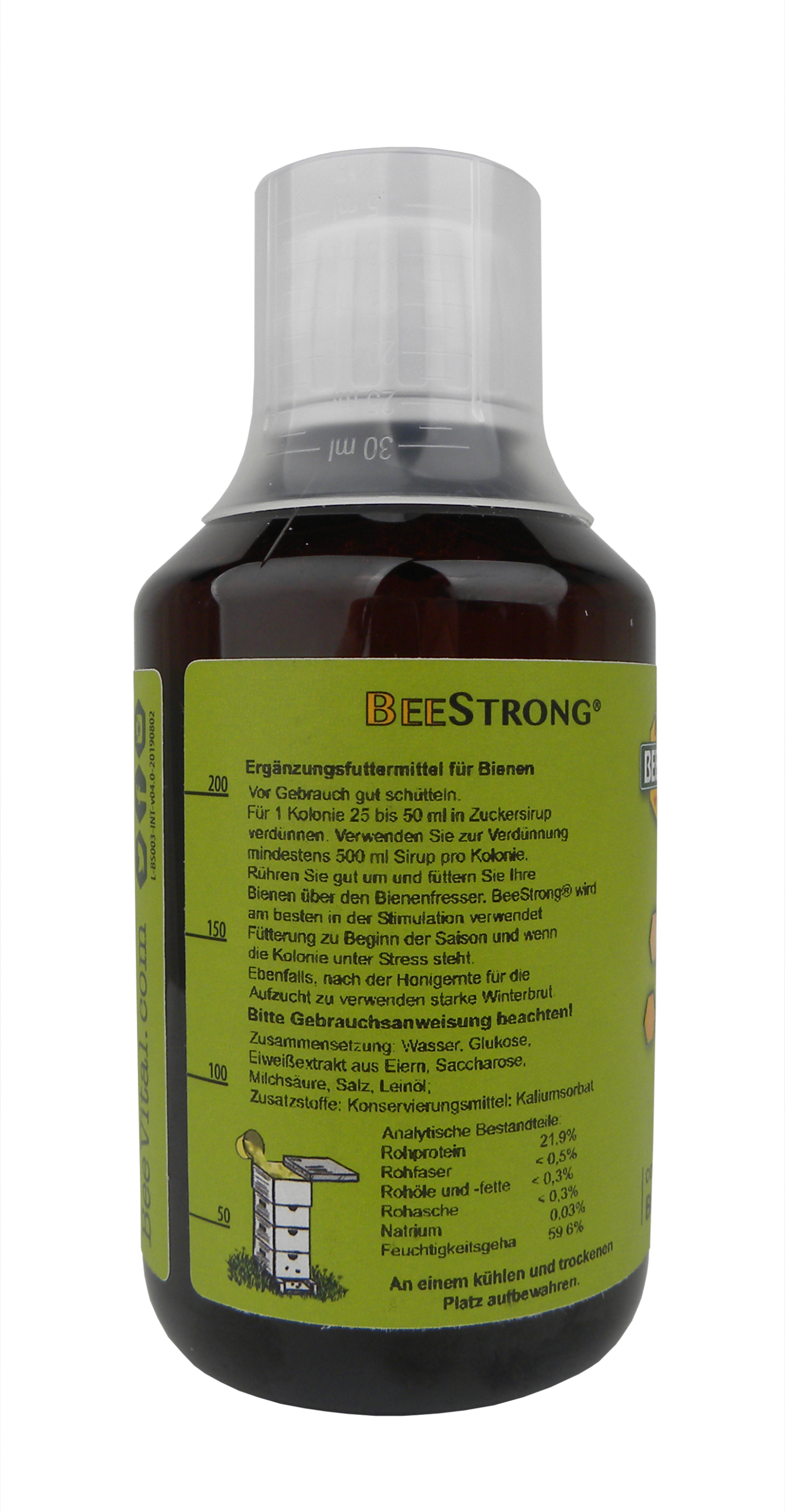 BeeStrong® ist ein natürlicher, hochkonzentrierter Bienenfutterzusatz. Es basiert auf reinem Protein und hat die ideale Aminosäuren-Zusammensetzung, sehr ähnlich der von Gelee Royal. Dieses hochwertige „Kraftfutter unterstützt das Immunsystem des Bienenvolkes präventiv gegen diverse Brutkrankheiten wie z. B. Amerikanische Faulbrut. Es fördert die Aufzucht starker und gesunder Völker, dabei unterstützt es das Bienenvolk auf natürliche Weise indem es die Larven stärkt und das Brutbild verbessert. BeeStrong® kann übers ganze Jahr, wenn Bienen Zufütterung annehmen, nach Bedarf verwendet werden. Besonders empfehlenswert ist die Verabreichung im Frühjahr als Reizfütterung und im Spätsommer um starke und gesunde Winterbienen aufzuziehen.