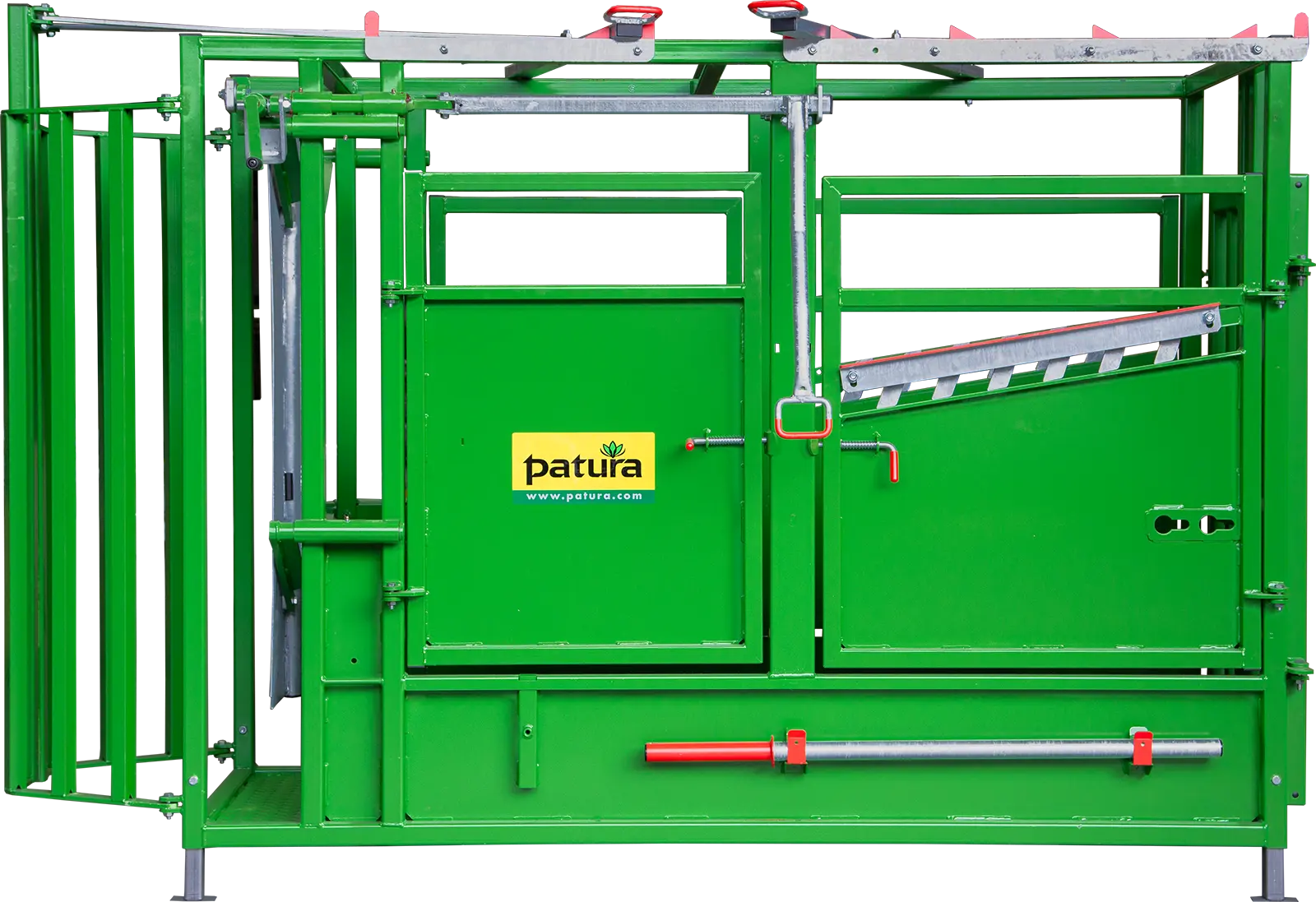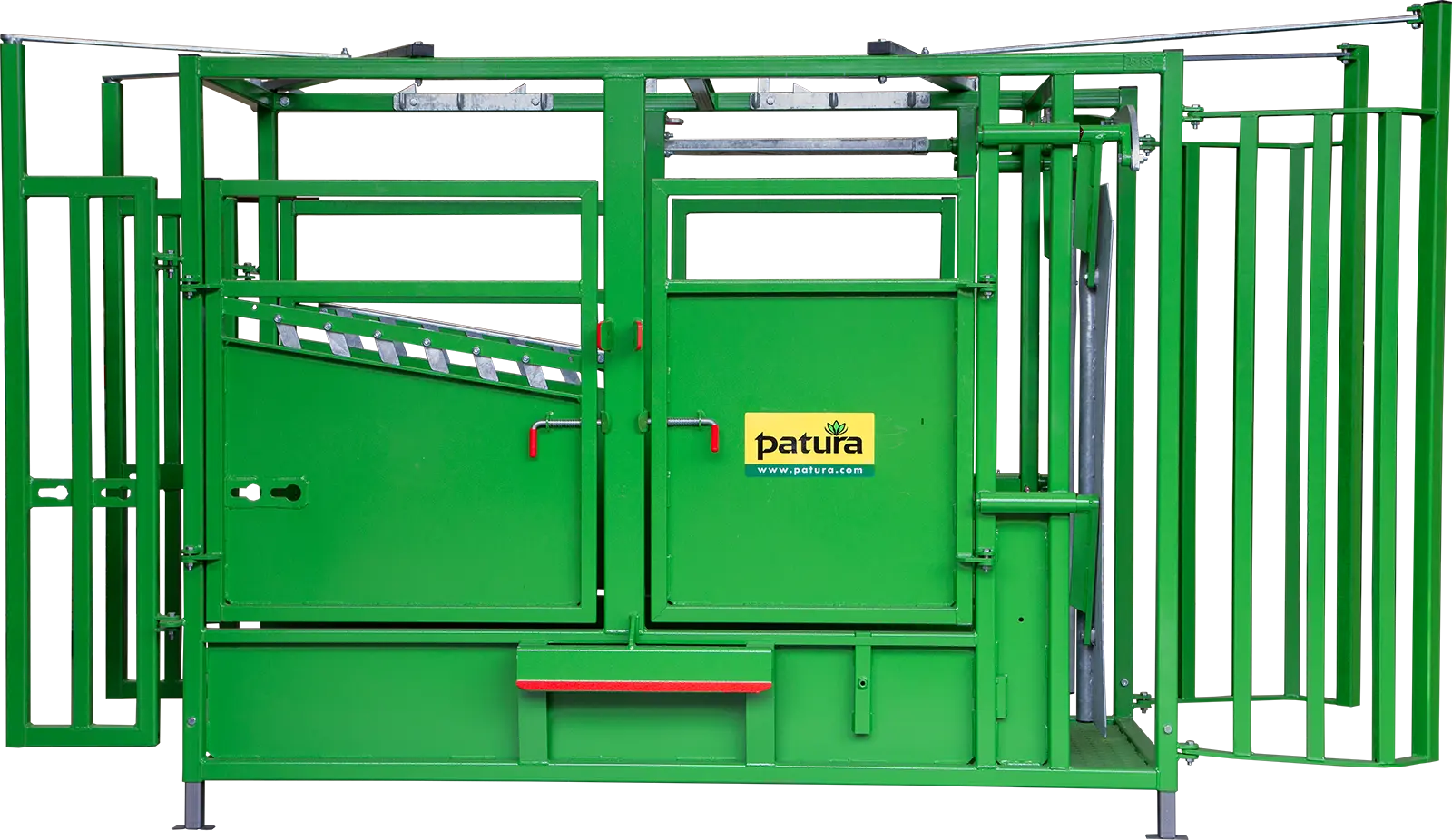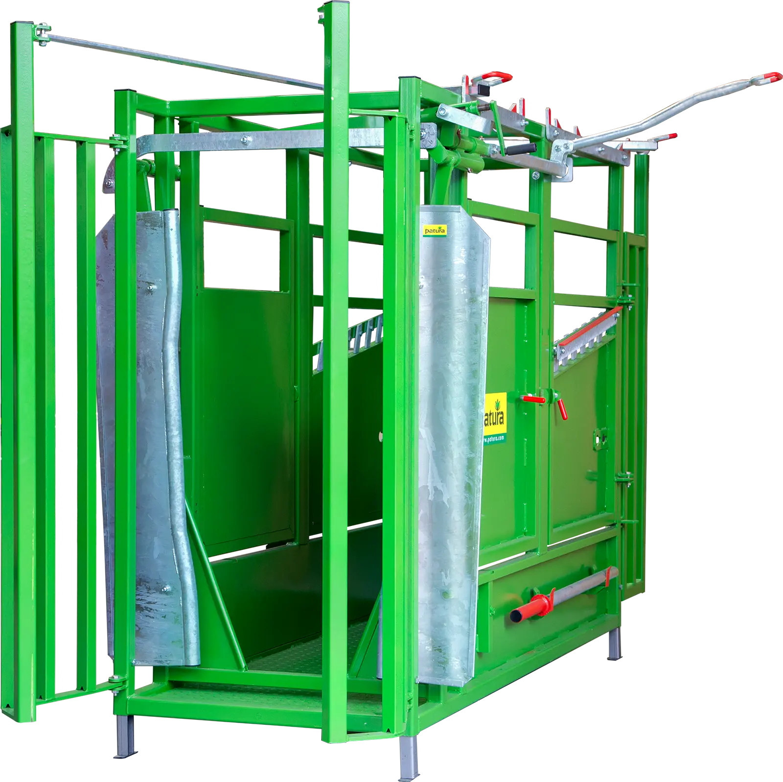 Fangkorb Fangkorb und zentrale Einhand-Bedienung für sicheres Fangen Sichere Arretierung des Fangkorbs Auslass der Tiere durch weit öffnende FrontpartieHalsfangrahmen
