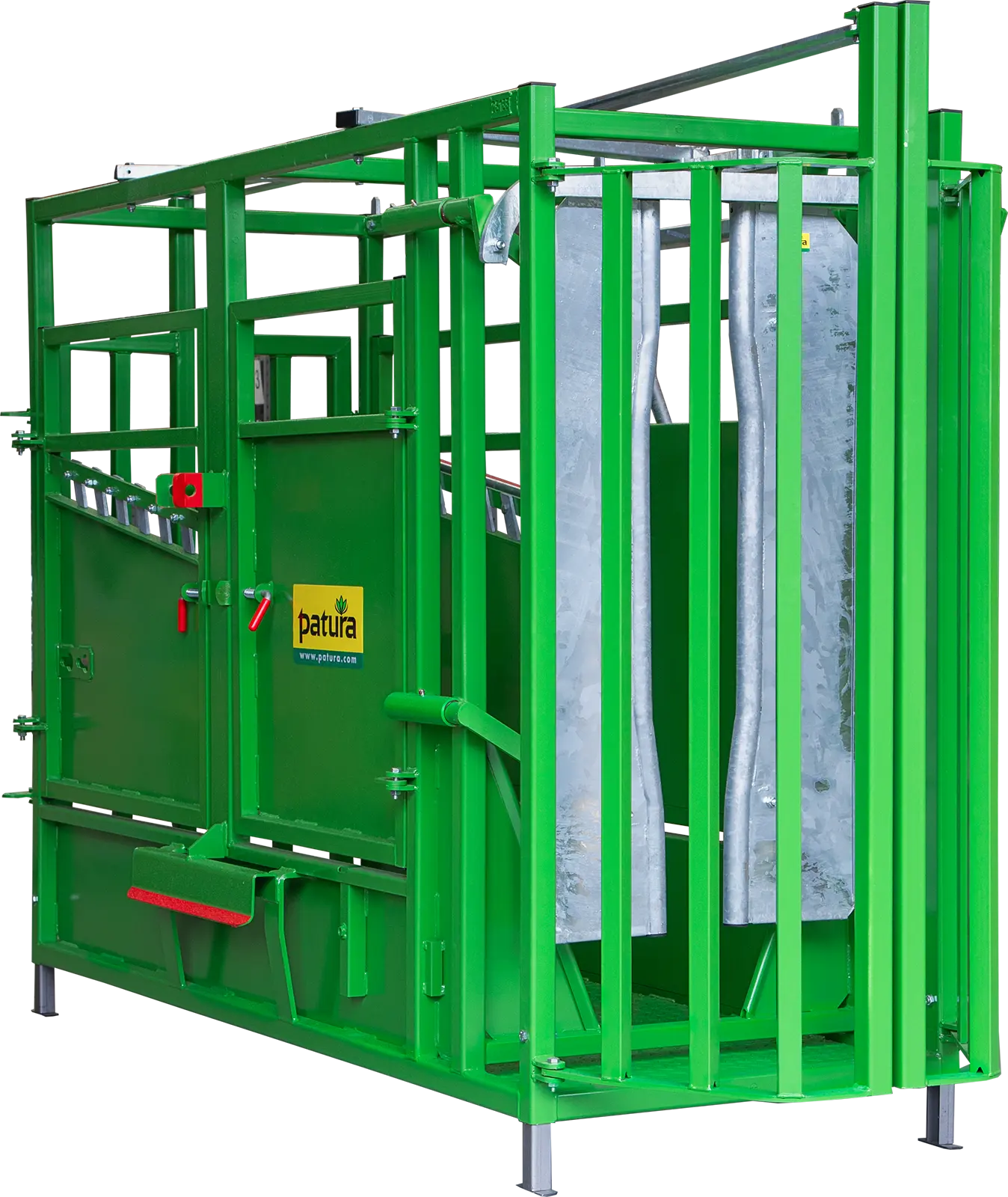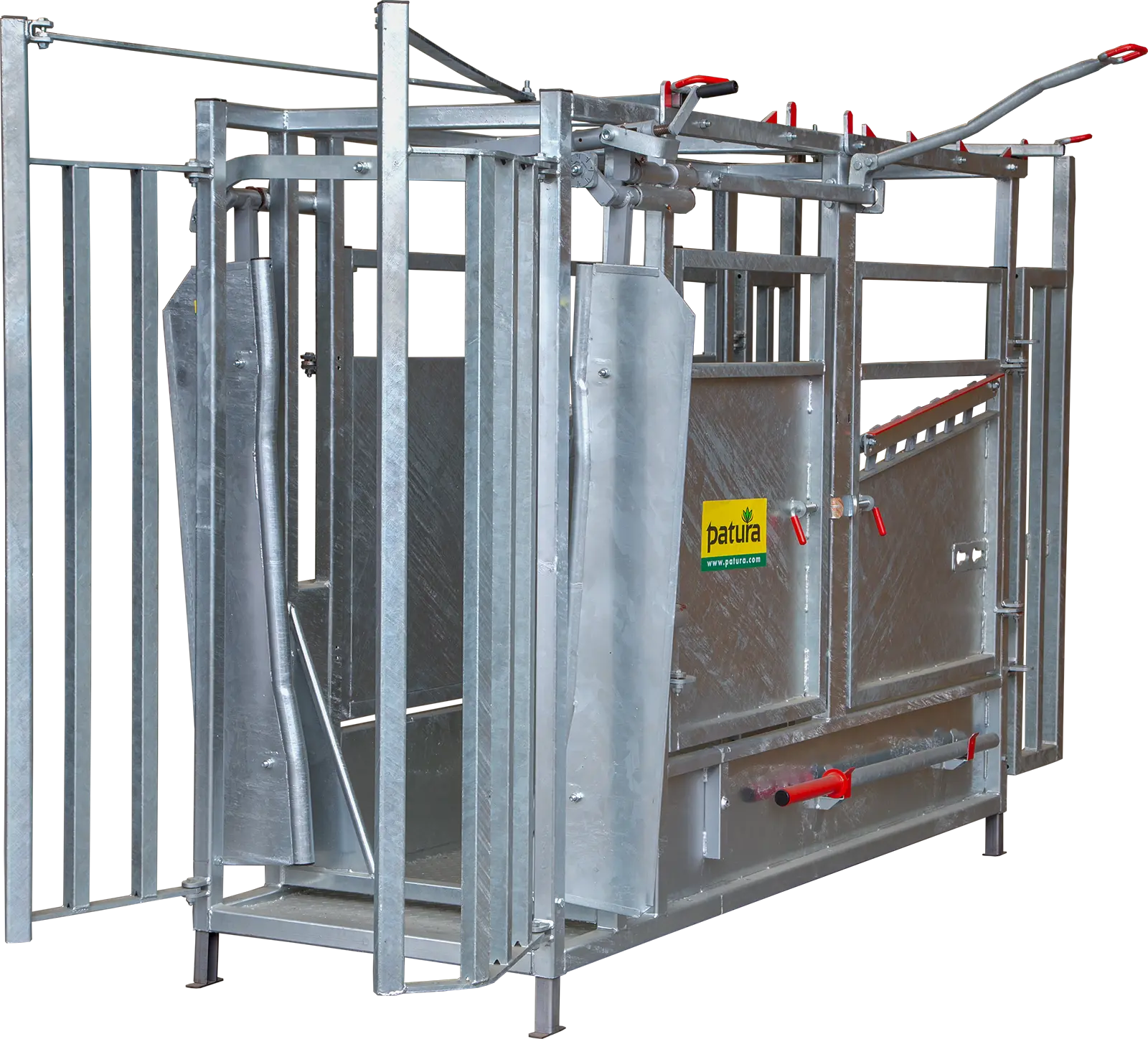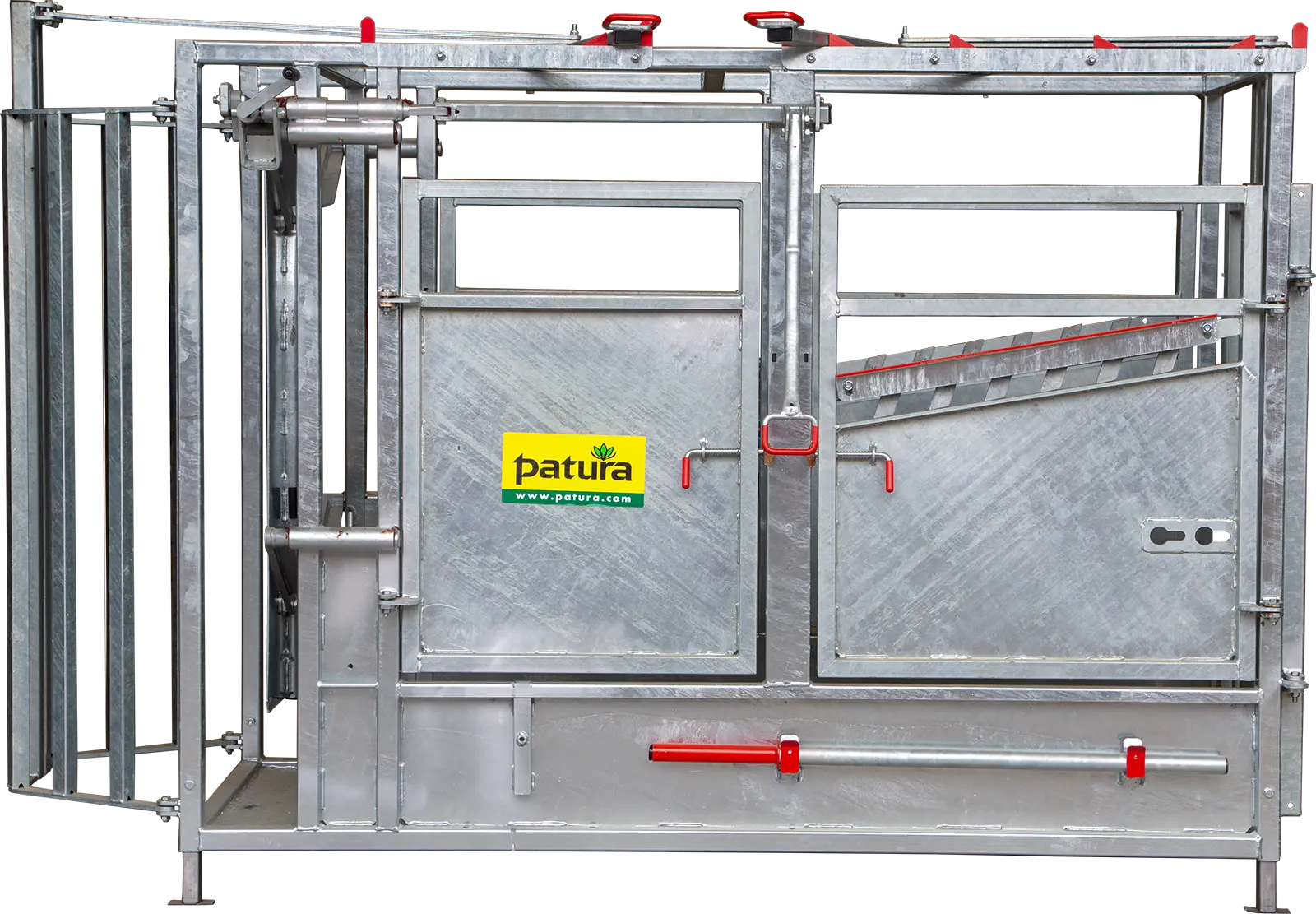 Fangkorb Fangkorb und zentrale Einhand-Bedienung für sicheres Fangen Sichere Arretierung des Fangkorbs Auslass der Tiere durch weit öffnende FrontpartieHalsfangrahmen