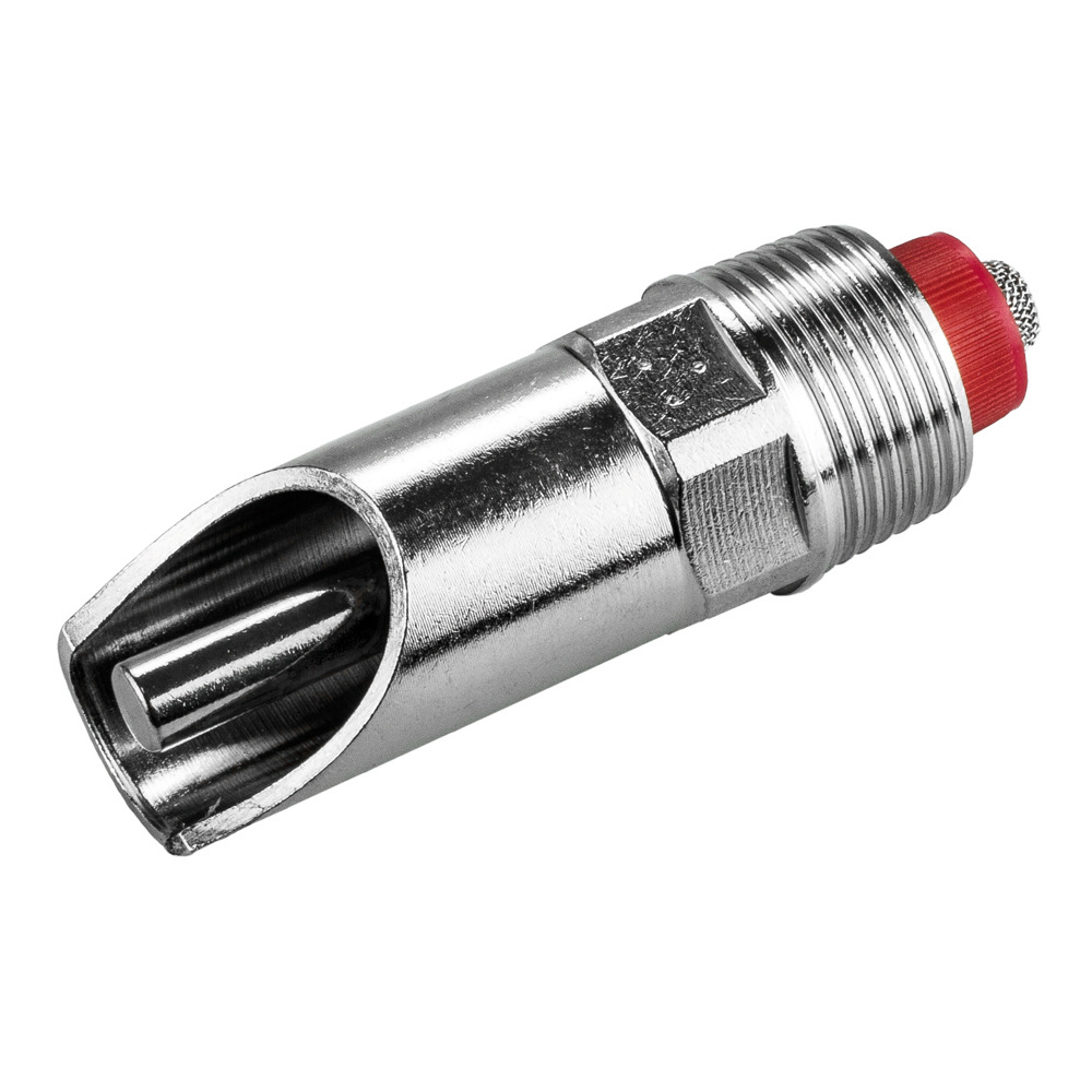 Beißtränke für Sauen und für die Mast, aus Edelstahl. Anschluss und Nippel 3/4 Zoll. Ø Druckkegel 8 mm. Einstellbare Düse von 0,8, 1, oder 2 mm für Hoch- oder Niederdruck. Gesamtlänge 81 mm, Ø Druckkegel 7,8 mm.