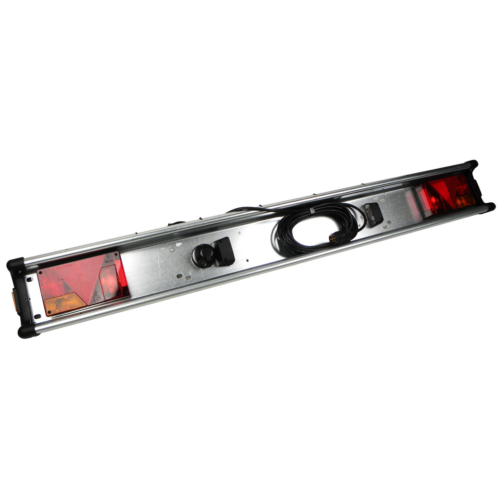 Komplett verkabelt, Anschlusskabel mit7-poligem Stecker und Steckdose, mit Schluss-, Brems-, Blinkleuchte, Kennzeichenbeleuchtung, 2 Dreieckrückstrahler, Blechstärke 2mm, Trägerhöhe: 210mm