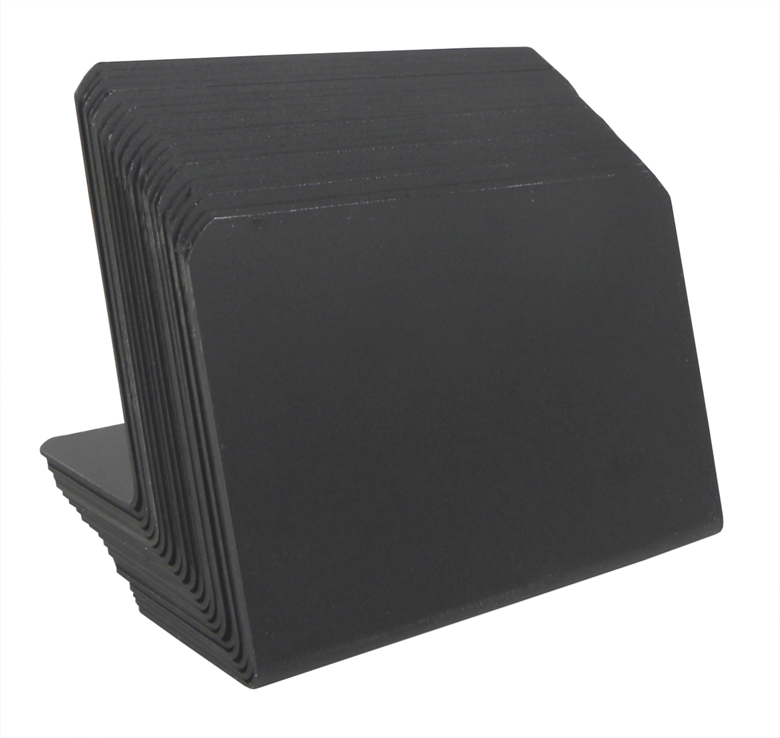 Klassischer Preisschild-Aufsteller in praktischer L-Form für die professionelle Warenpräsentation. Das robuste Material mit abgerundeten Ecken sorgt für eine hochwertige Optik und langlebigen Einsatz in Ihrer Auslage.
