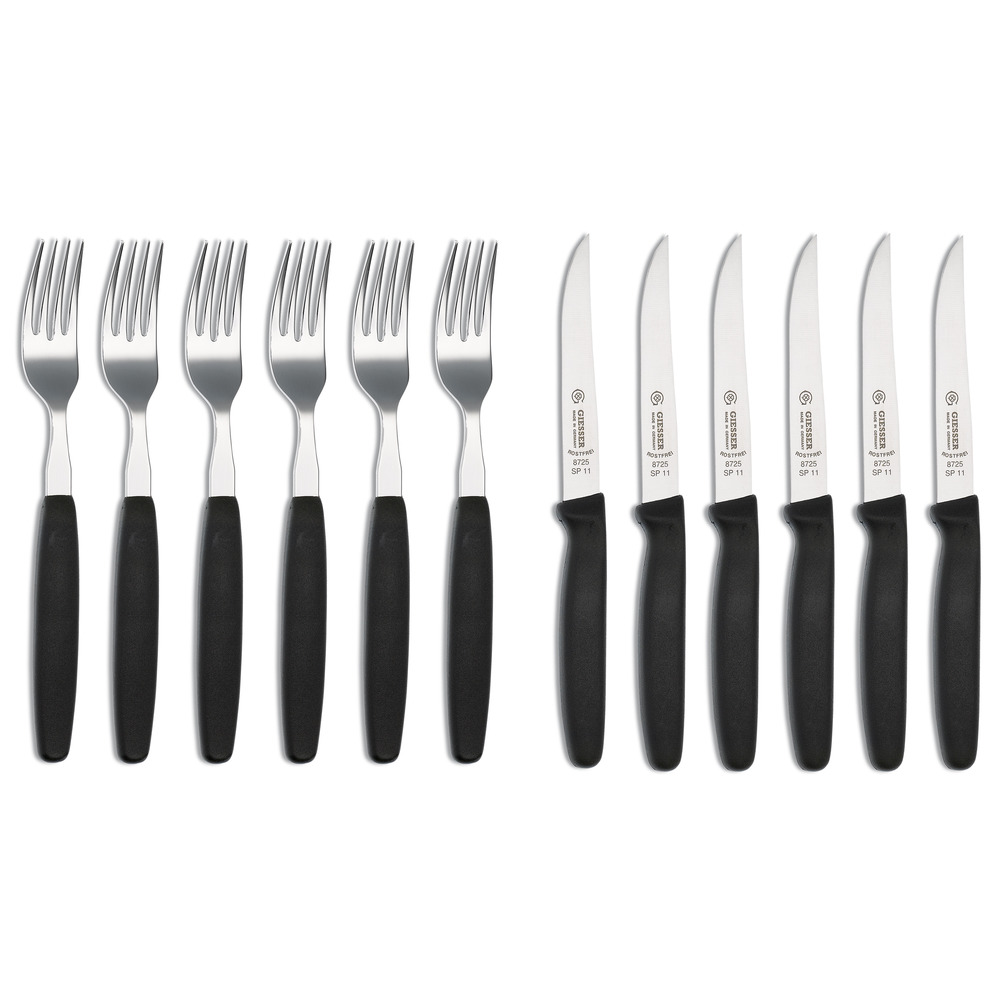 Hochwertiges Besteck Set 12-tlg. bestehend aus 6 Messerglatt und 6 Gabeln. Das Besteck ist spülmaschinengeeignet. Zum Schutz der Schneide empfehlen wir jedoch die Messer manuell zu reinigen.