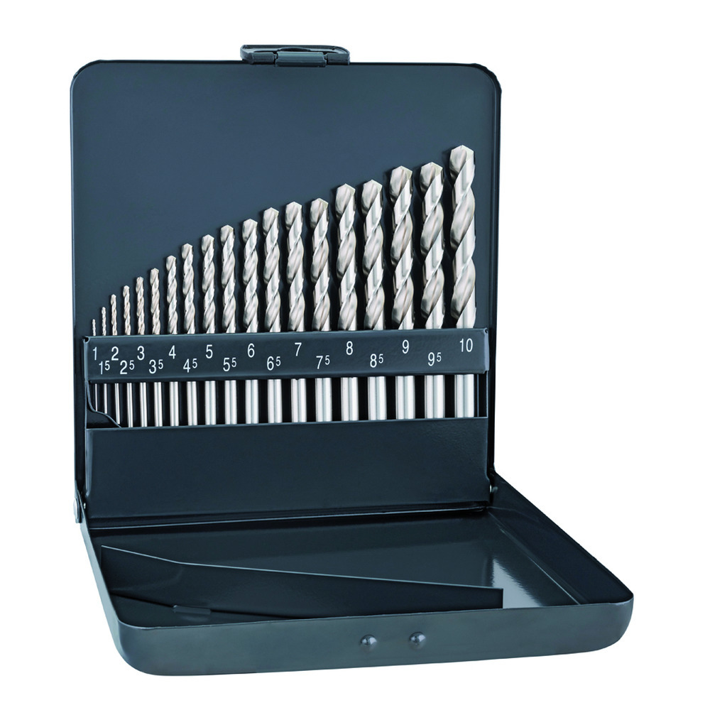 Hochwertige HSS Cobalt Bohrer für den Einsatz beim Bohren von hochwertigen Stählen bis zu einer Festigkeit von 800 N/mm2, z.B. rostfreier Stahl. Metallkassette von 1,0 bis 10,0 mm, Steigung 0,5 mm.