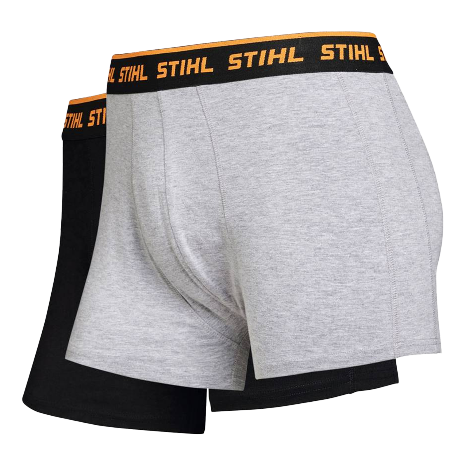 Die sehr bequemen, eng anliegenden Boxershorts sind in den Farben grau und schwarz im Set erhältlich.Mit durchlaufendem Stihl-Logo auf dem Bund.Material grau: 85% Baumwolle, 10% Viskose, 5% ElastanMaterial schwarz: 95% Baumwolle, 5% Elastan
