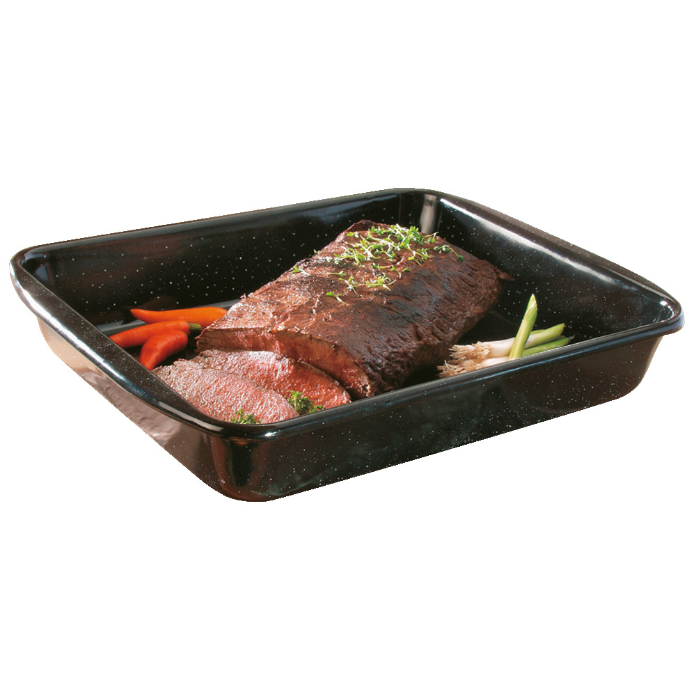 Die Bratrohrpfanne zeichnet sich durch ihren besonders hohen Rand von 7 cm aus. Egal ob Auflauf, Braten oder sogar Süßspeisen wie Obstkuchen oder Buchteln lassen sich in ihr problemlos zubereiten. Die Speisen gelingen in der Bratrohrpfanne und nichts läuft über den hohen Rand. Der Rand ist rund geschwungen – Bördelrand in der Emaillesprache – dabei wird das Metall gebogen, um einen runden und stabilen Rand zu erzeugen. Die Bratrohrpfanne kann ohne Probleme bei hoher Hitze in den Backofen gestellt werden, wobei der Gebrauch von Topflappen wärmsten empfohlen wird. In der Bratrohrpfanne können alle Gerichte auch problemlos mit dem Messer geschnitten werden (Glaskeramikmesser ausgenommen). Der Werkstoff Emaille besteht aus Eisen, das bei hohen Temperaturen mit Glas verschmolzen wurde, also aus natürlichen Rohstoffen. In unseren Back- und Bratformen aus Emaille wird dank des Eisenkerns wird die Wärme schnell geleitet und perfekt gespeichert: für nachhaltiges, energiesparendes und rundum gleichmäßiges Braten oder Backen. Perfekte Hygiene garantiert die porenlos, glatte Oberfläche aus Glas. Diese ist aromaneutral und bakterienhemmend und zudem leicht zu reinigen. Bei sachgemäßem Gebrauch und richtiger Pflege macht Emaillegeschirr lange Freude und behält seinen typischen Glanz.