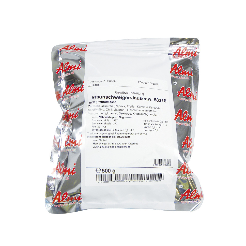 Qualität von höchster Güte, aromageschützt verpackt. Hochwertige Rohstoffe sind die Basis für erstklassige Produktqualität.0,5 kg, 6 g/kg Wurstmasse.