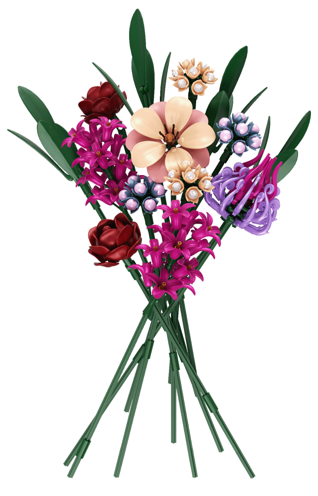 Mit rund 800 Klemmbausteinen gestaltest du ein farbenfrohes Arrangement in warmen Tönen: Pink, Weinrot und Rosé sorgen für eine harmonische Optik,