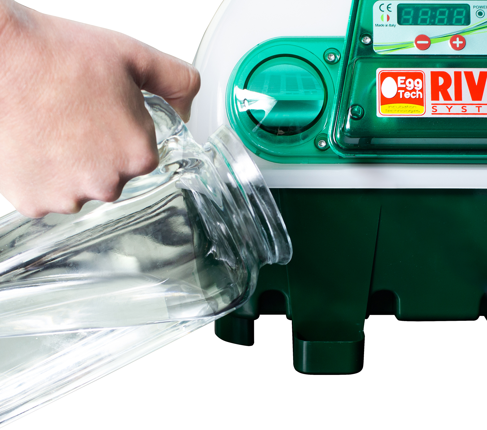 - Düsen: Die externen Belüftungsöffnungen dienen dazu, die Wasserschalen zu füllen, ohne den Inkubator zu öffnen, und verhindern so Wärme- und Feuchtigkeitsverluste