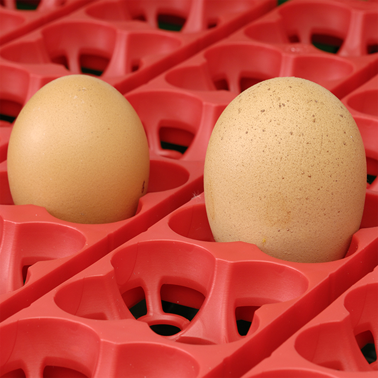 - Alveolensystem: Die besondere Form jedes Eierhalters erlaubt es, sowohl kleine Eier (bis zu 4 Wachteleier) als auch große Eier (bis zu Gänseeier) aufzunehmen