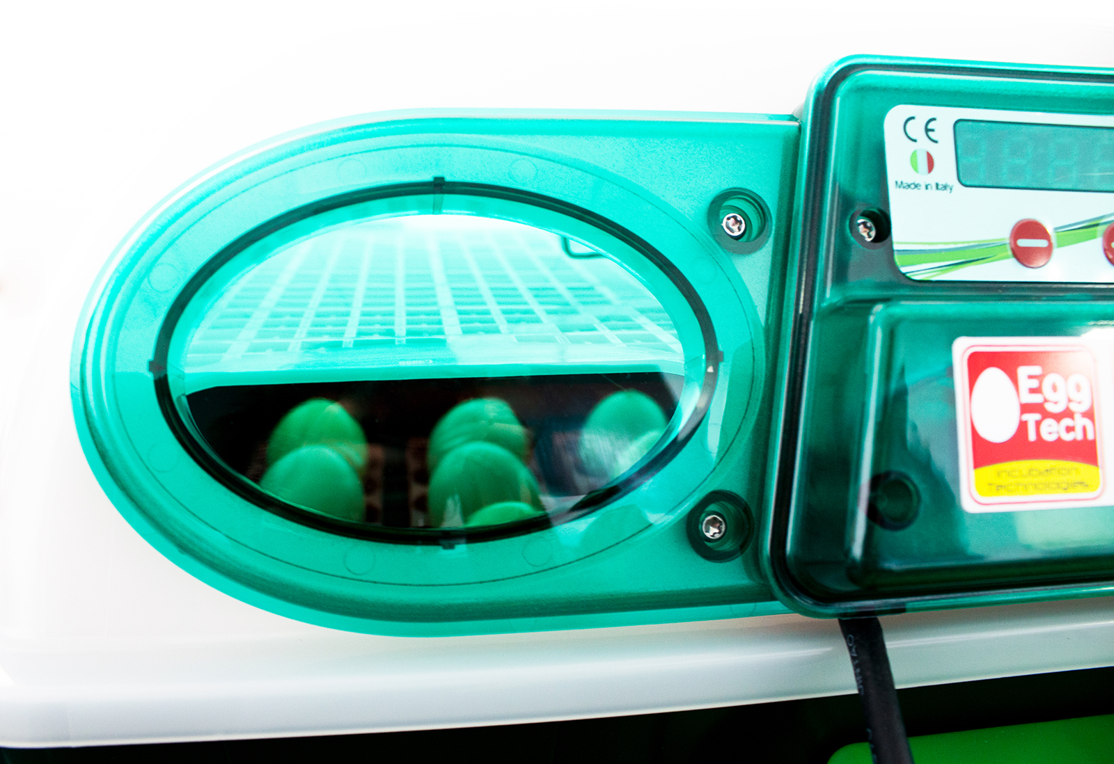 - Bullauge zur Inspektion: Der Deckel ist mit zwei Inspektionsöffnungen ausgestattet, die es dem Benutzer ermöglichen, alle Phasen der Brutzeit von außen zu verfolgen. Eine Beleuchtung ist mittels Steuerung oder App möglich