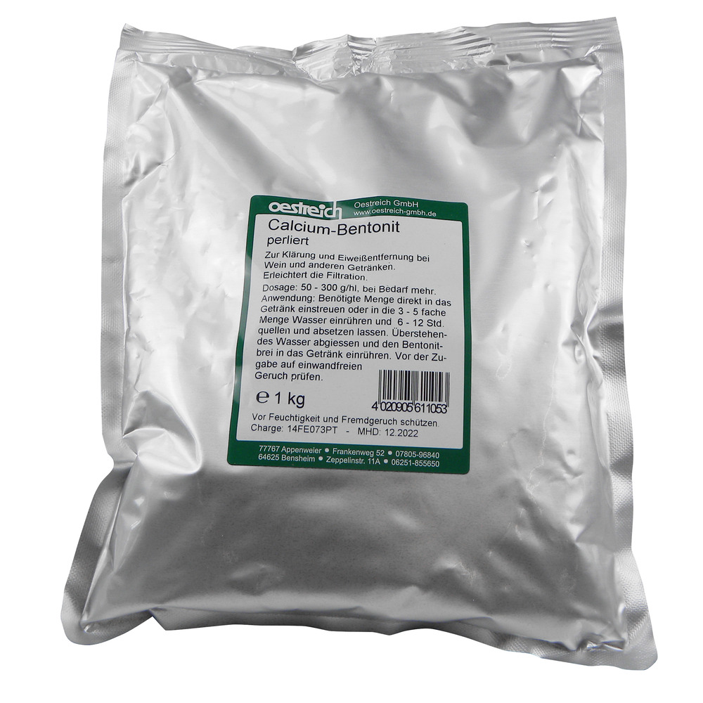Zur Klärung und Eiweißentfernung bei Wein und anderen Getränken. Erleichtert die Filtration.Dosage: 50-300 g/hlAnwendung: Benötigte Menge direkt in das Getränk einstreuen oder in die 3-5 fache Menge Wasser einrühren und 6-12 Std. quellen und absetzen lassen. Überstehendes Wasser abgießen und den Bentonitbrei in das Getränk einrühren. Vor der Zugabe auf einwandfreien Geruch prüfen.