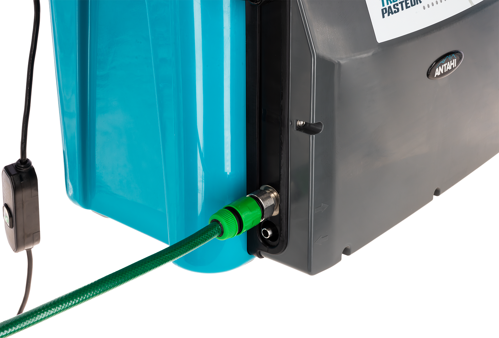 - Wasserzufuhr manuell sowie über Wasserleitung möglich