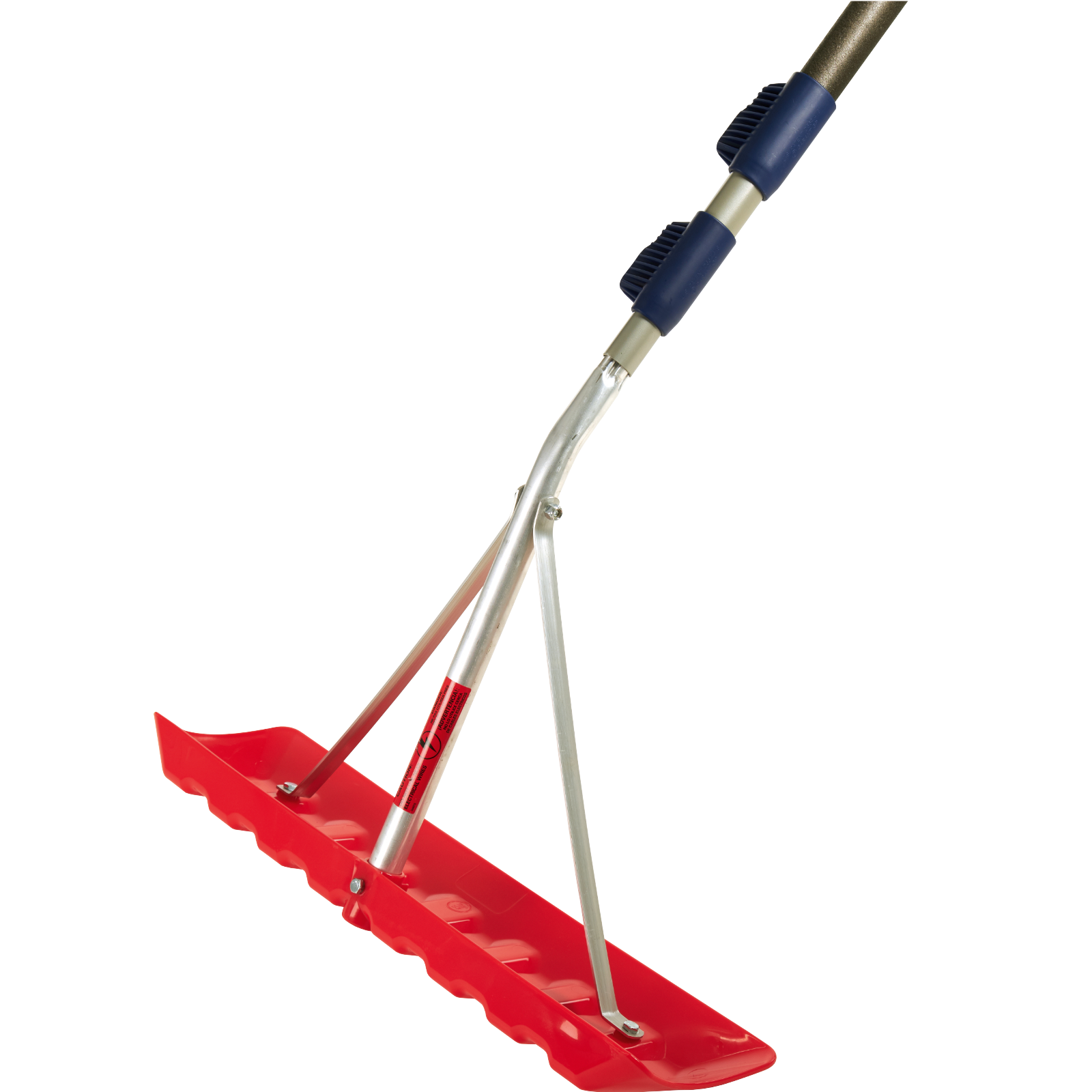 Praktisch und schnell zur Hand - effektive Schneeräumung von Dächern, Flachdächern, Glashäusern. Planen, Markisen oder Photovoltaikanlage.Der ovale Stiel aus Aluminium sorgt für hohe Stabilität bei geringen Gewicht (nur 2 kg).Die multiple Längenverstellung (teleskopierbar 228 - 500 cm) sorgt für die optimale Anpassungauf die gewünschte Arbeitshöhe.Das optimal geformte Kunststoffblatt mit 60x15x4,5 cm ermöglich ein einfaches und schonende Entfernen der Schneedecke.Durch die beiden seitlichen Zusatzstreben ist selbst schwerer Schnee problemlos zu entfernen.Günstige und praktische Lösung um Schnee von Dächern zu entfernen oder die Stromproduktion ihrer PV-Anlage auch im Winter zu gewährleisten.
