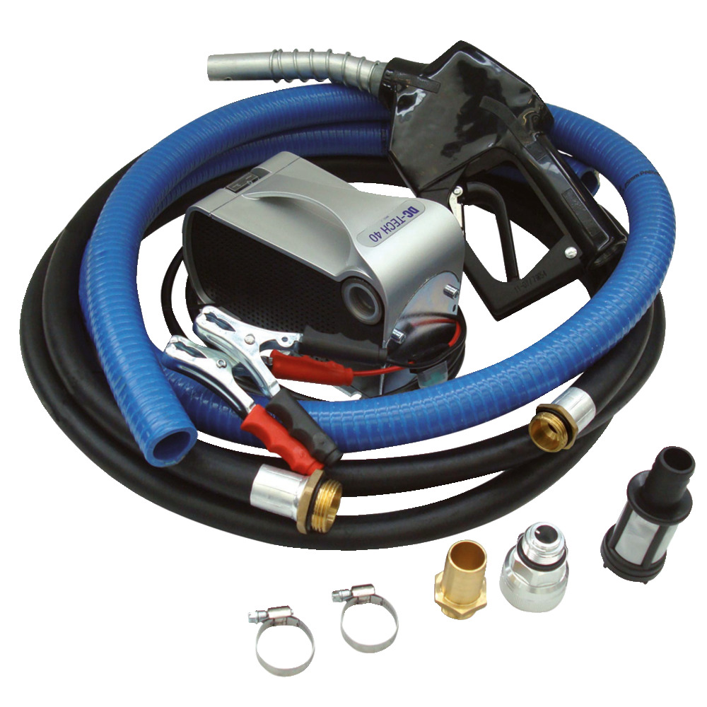 Kompakte 24 Volt Dieselpumpe mit max. 40 L/min. Leistung. Gewicht nur 3,6 kg, selbstsaugend bis 2 Meter, Höchstdruck 1,3 bar. Komplett mit 1,8 Meter Anschlusskabel 2,25 Meter Saugschlauch, 4 Meter Auslaufschlauch sämtliche Armaturen in 3/4 Zoll, Ansaugfilter sowie eine automatische Zapfpistole. Ideal zum Betanken von Fahrzeugen.