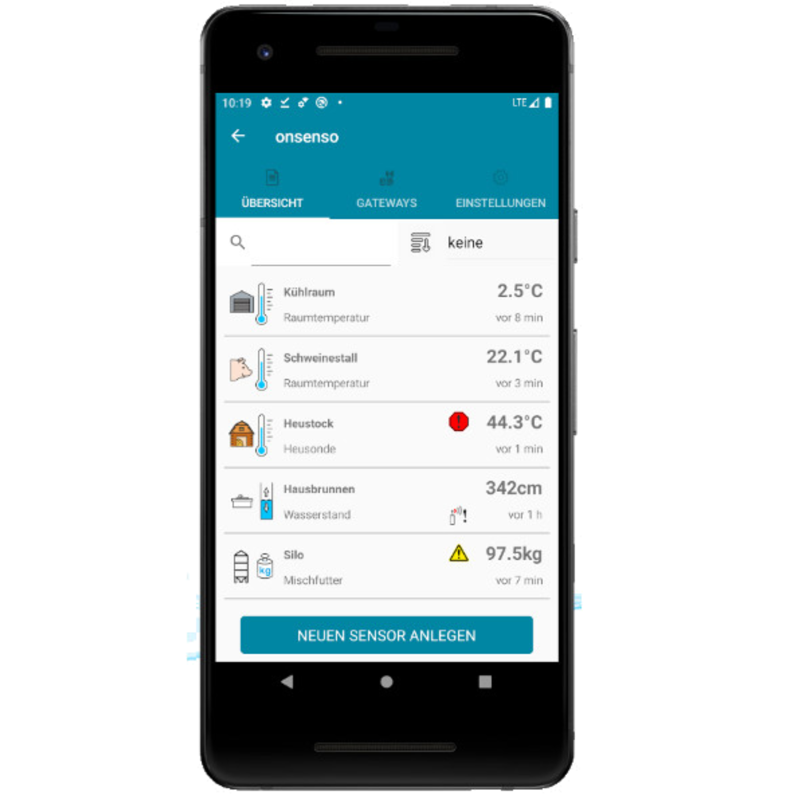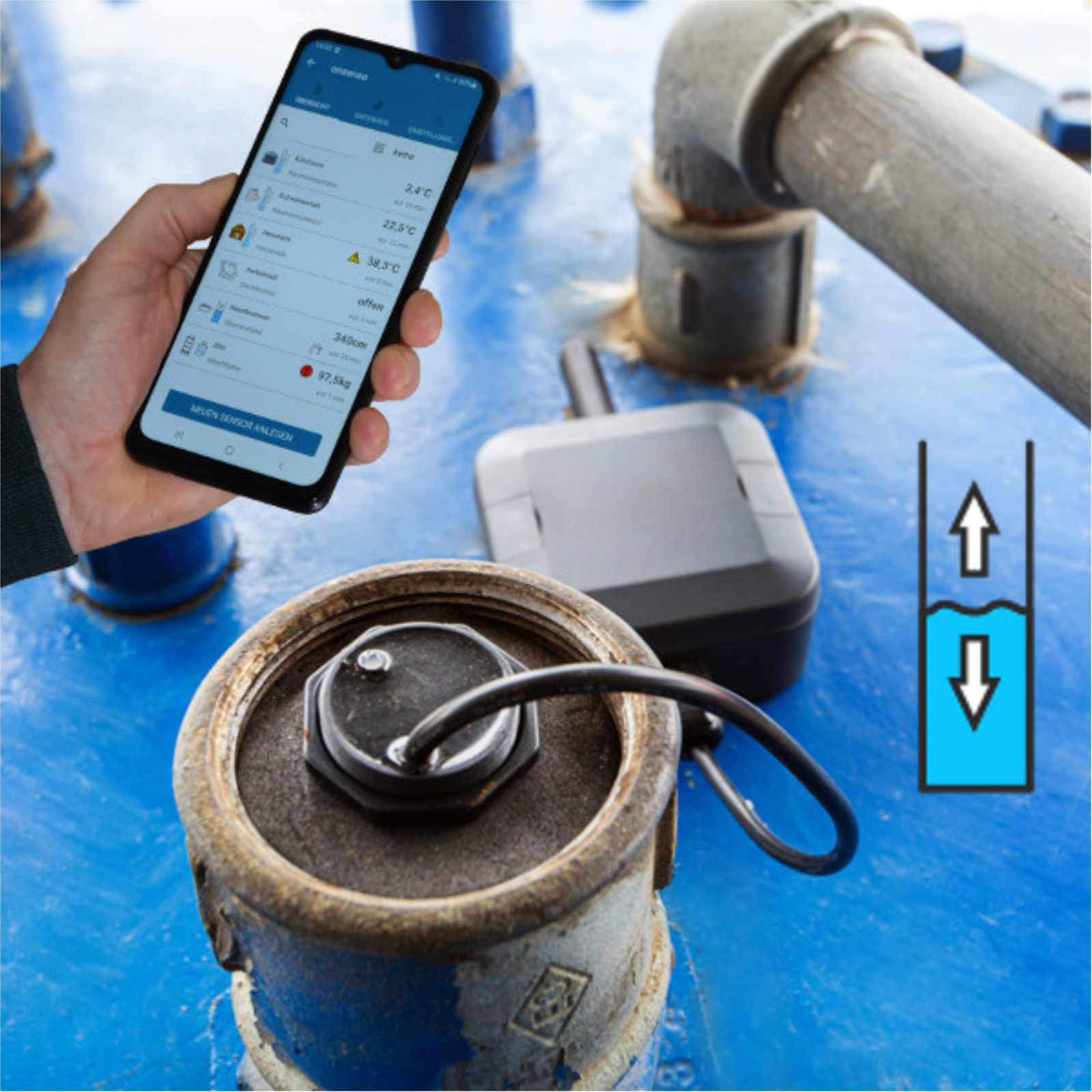 Produktbeschreibung: Zuverlässige und bequeme Überwachung Ihres DieseltanksMit dem Überwachungssystem von onsenso wird der Füllstand gemessen und auf die vorhandene Füllmenge umgerechnet. Sie können jederzeit am PC oder Handy Ihren Treibstoffvorrat ablesen.Rechtzeitige NachbestellungÜber die eingestellte Mindestmenge wird bei Unterschreitung die Information für die Nachbestellung über Push-Nachricht oder E-Mail gesendet. Das System kann so eingestellt werden, dass die Nachricht auch an externe Personen - zum Biespiel Ihrem Lieferant - übermittelt wird.