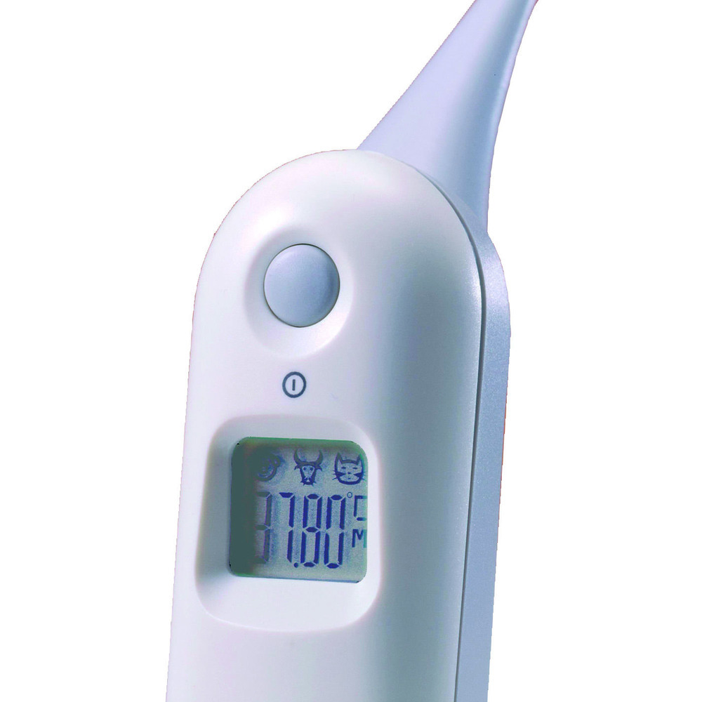 Digitales Fieberthermometer zum rektalen Gebrauch für Tiere. Temperaturmessung innerhalb 10 - 15 Sek., frei wählbar zwischen Celsius (°C) und Fahrenheit (°F), ergonomisch auf das Tier abgestimmt, inkl. Batterien 1,5 V AAA Micro.