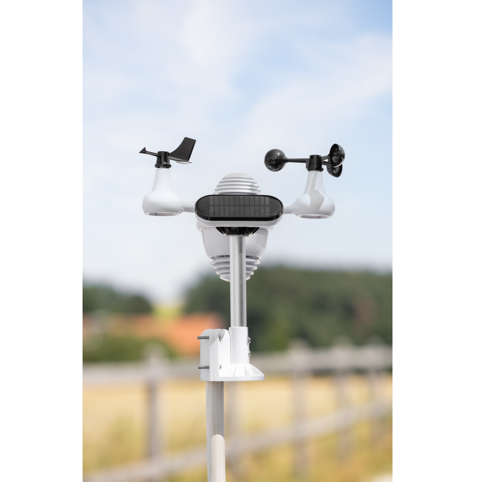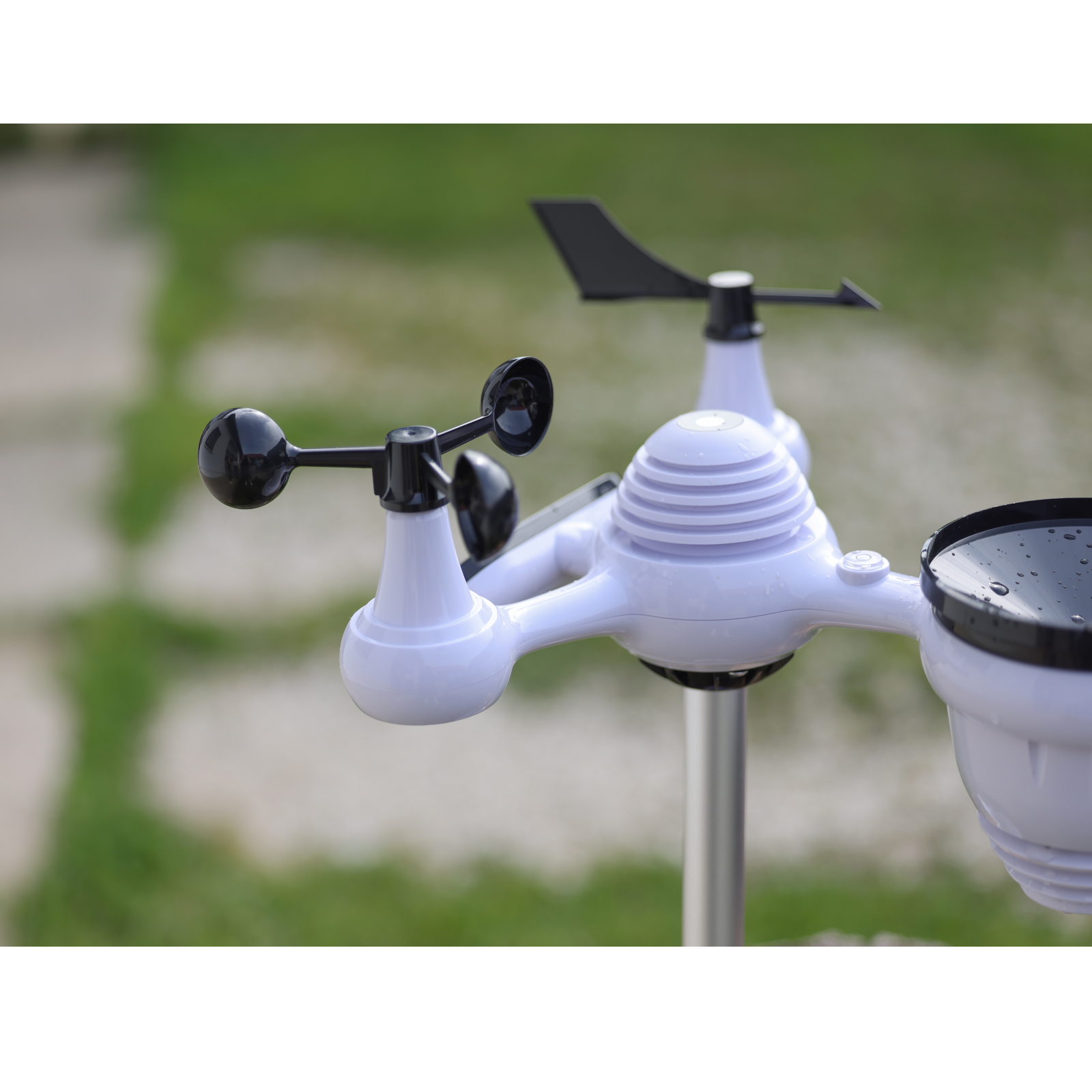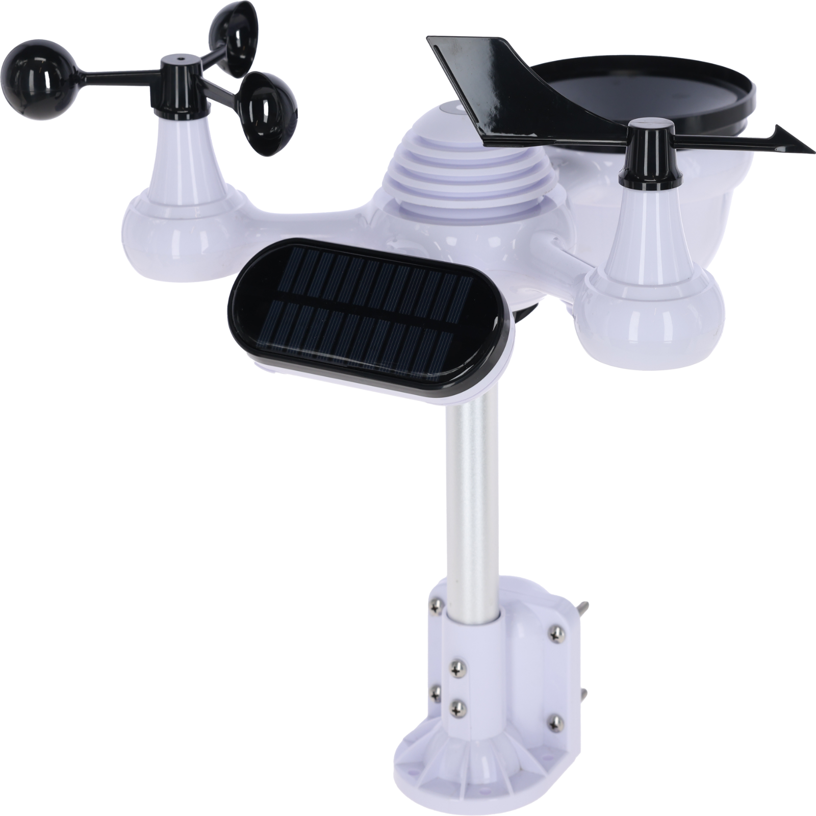 - zur Messung von Temperatur, Luftfeuchtigkeit, Regen, Windgeschwindigkeit und -richtung, UV-Index, Luftdruck und Taupunkt
