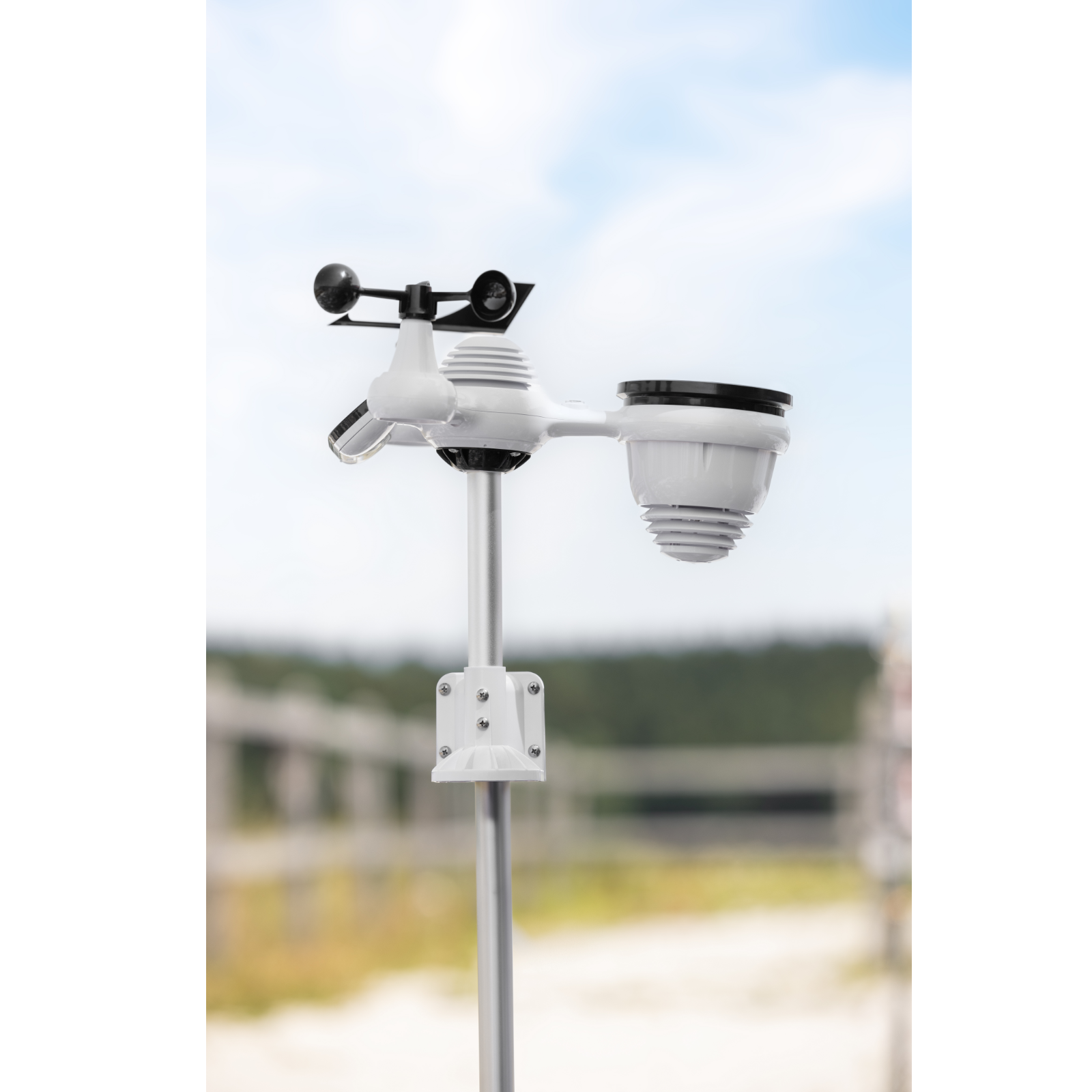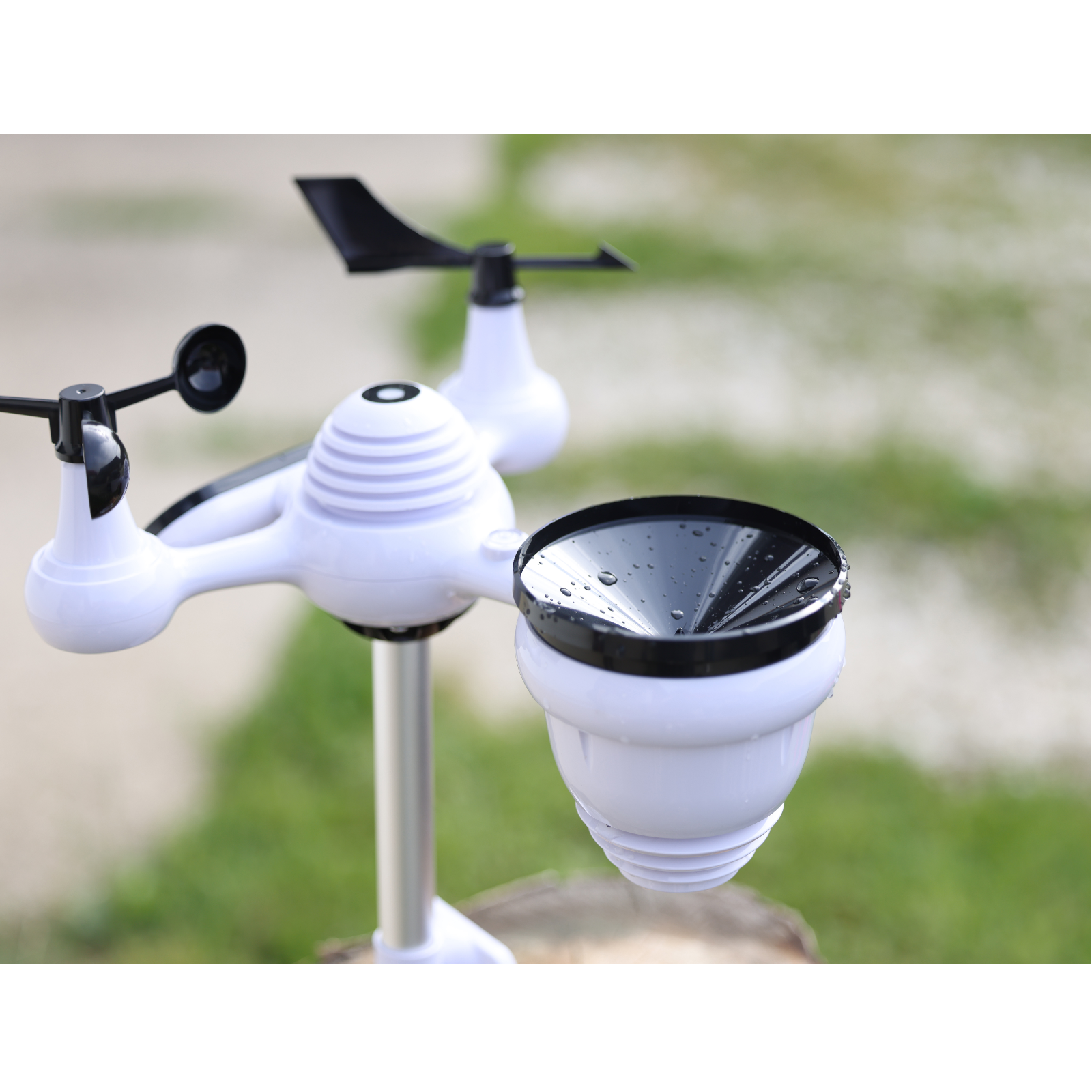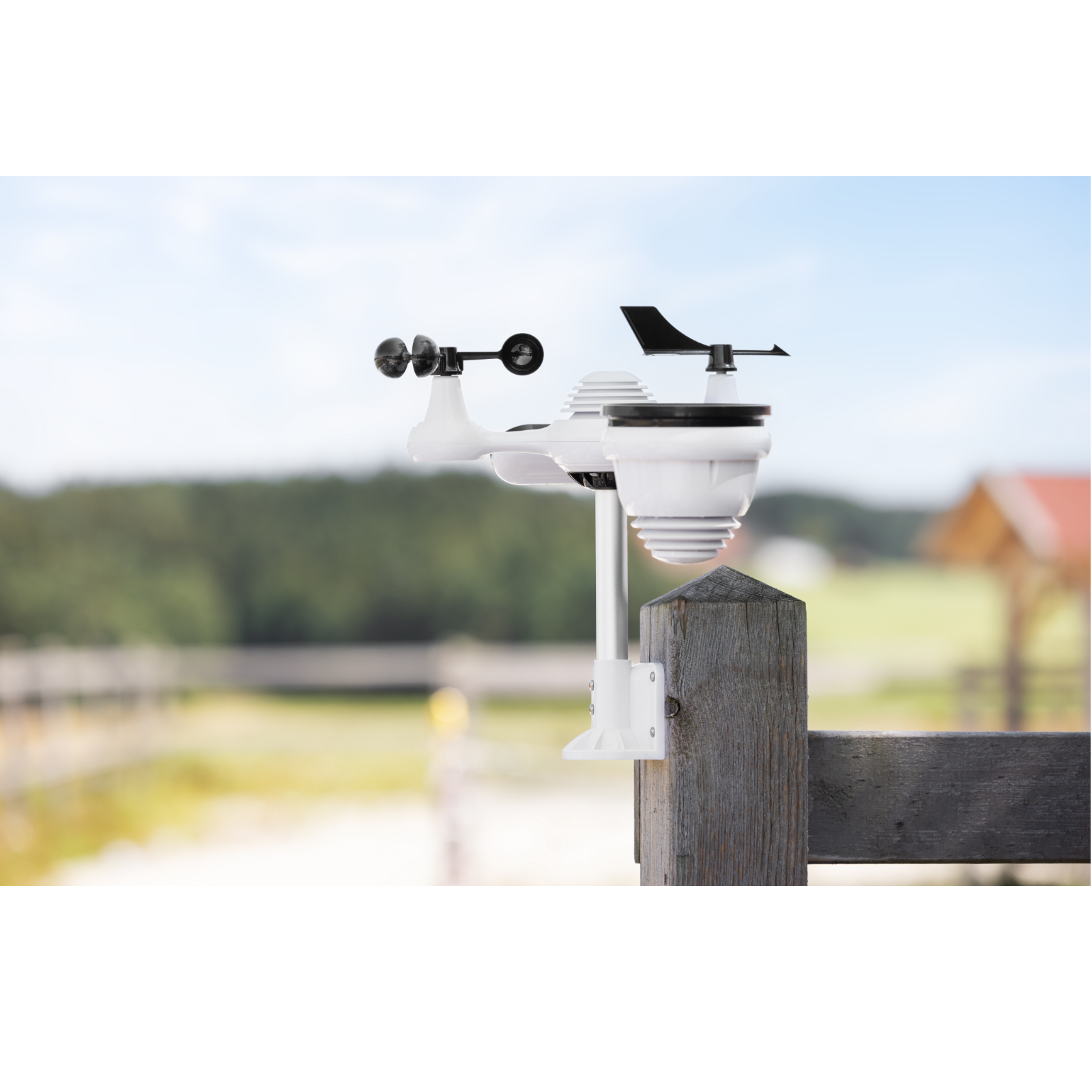- zur Messung von Temperatur, Luftfeuchtigkeit, Regen, Windgeschwindigkeit und -richtung, UV-Index, Luftdruck und Taupunkt