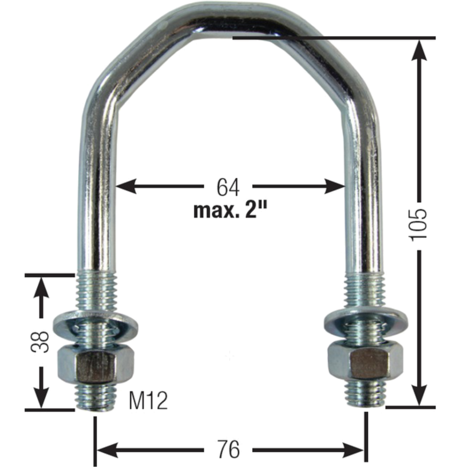 Set ​bestehend aus 2 Stück U-Bügel verzinkt mit Scheibe und Mutter sowie 2 Gußstücken.Für Rohr-Ø 11/4 Zoll - 2 Zoll.