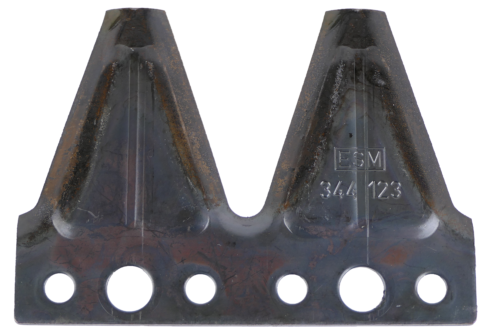 Doppelklinge 6-Loch mit 10 mm Mittelbohrung. Die Nietenbohrungen haben an der Unterseite eine Senkung.