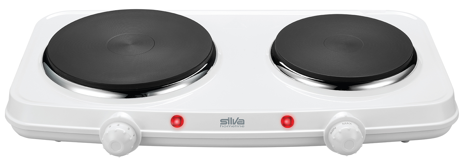 Praktische Doppelkochplatte mit Leistung: ca. 1500 + 750 Watt.