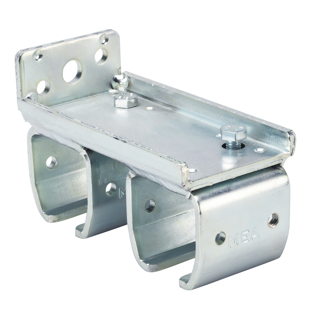 Ideale Befestigung von zwei hintereinander laufenden Schienensystemen. Kinderleicht am Mauerwerk befestigt, galvanisch verzinkt.BG2 mit Abstand 90 mm (Laufrohr Mitte-Mitte), Höhe 95 mm, Breite 150 mm